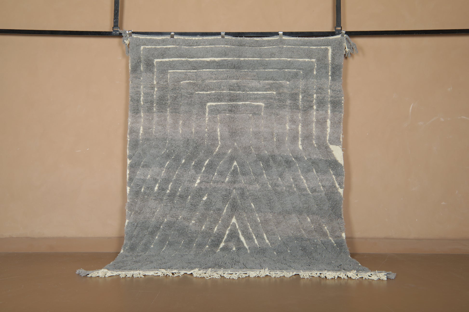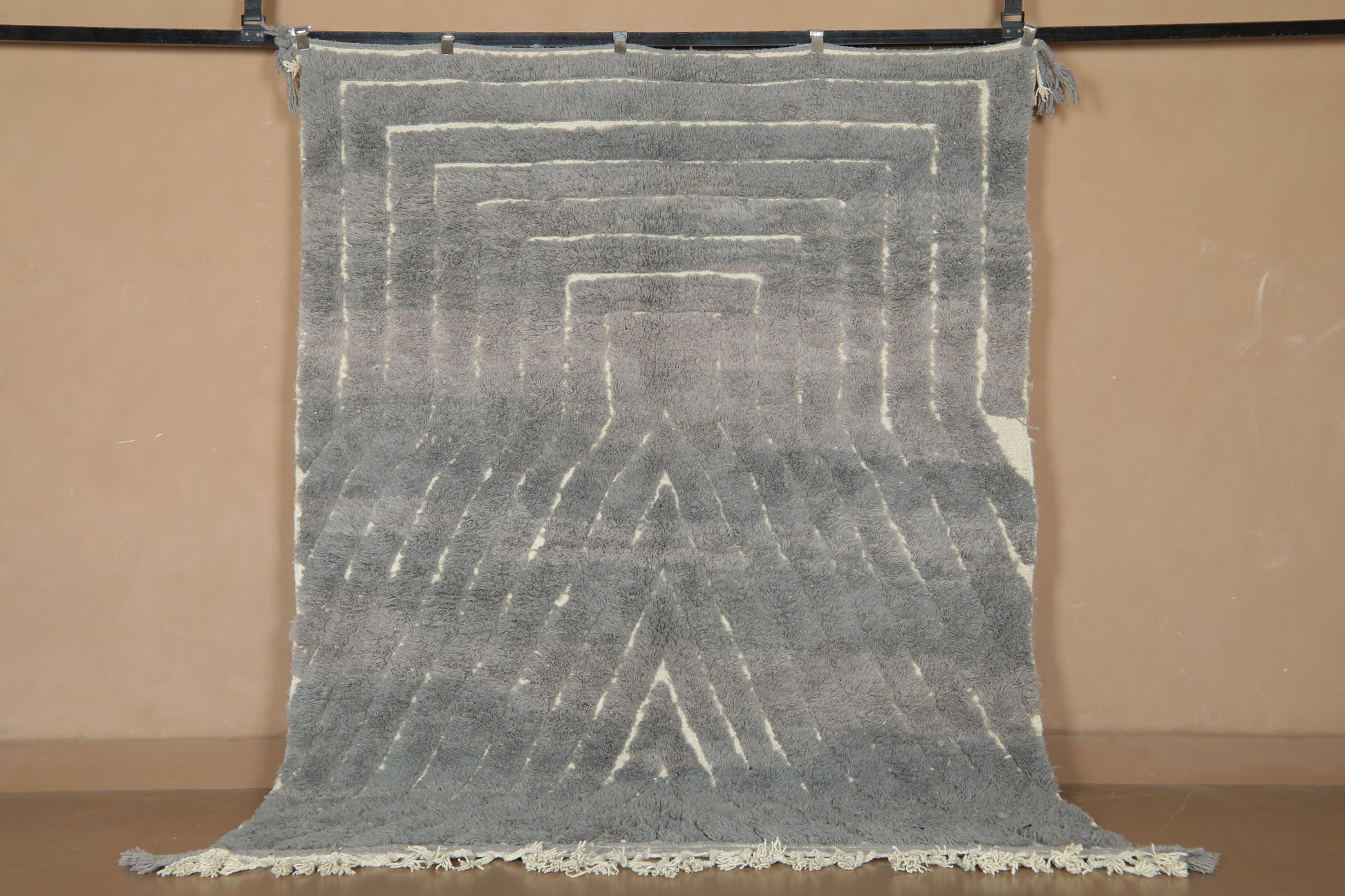 Elevate your home with this custom handmade Moroccan rug, designed to blend modern sophistication with timeless craftsmanship. Featuring a gradient gray and cream palette with a striking geometric pattern, this rug brings depth, texture, and balance to any space. Its plush wool surface adds warmth and comfort, making it a versatile piece for contemporary, minimalist, or Scandinavian-inspired interiors.
