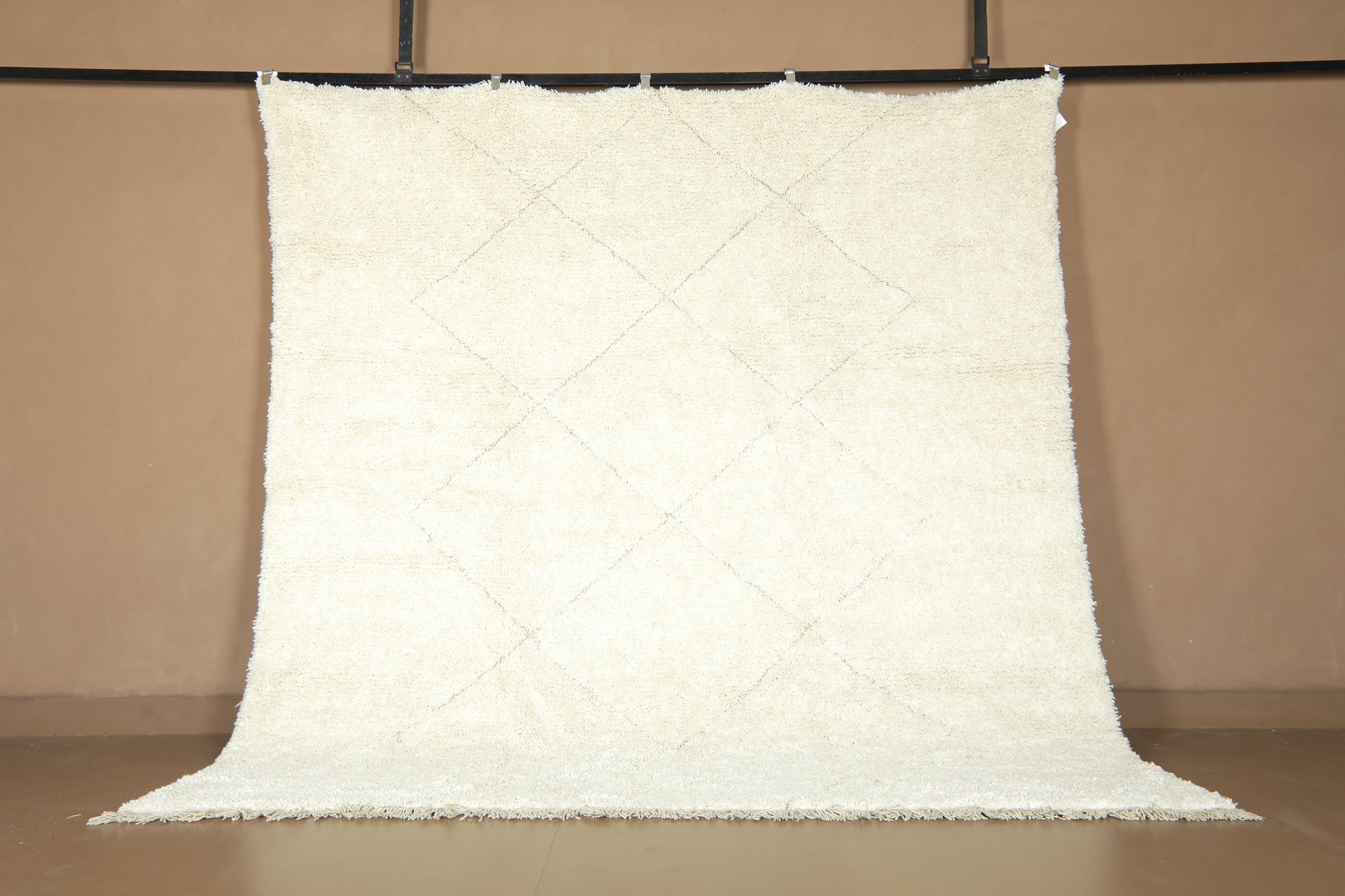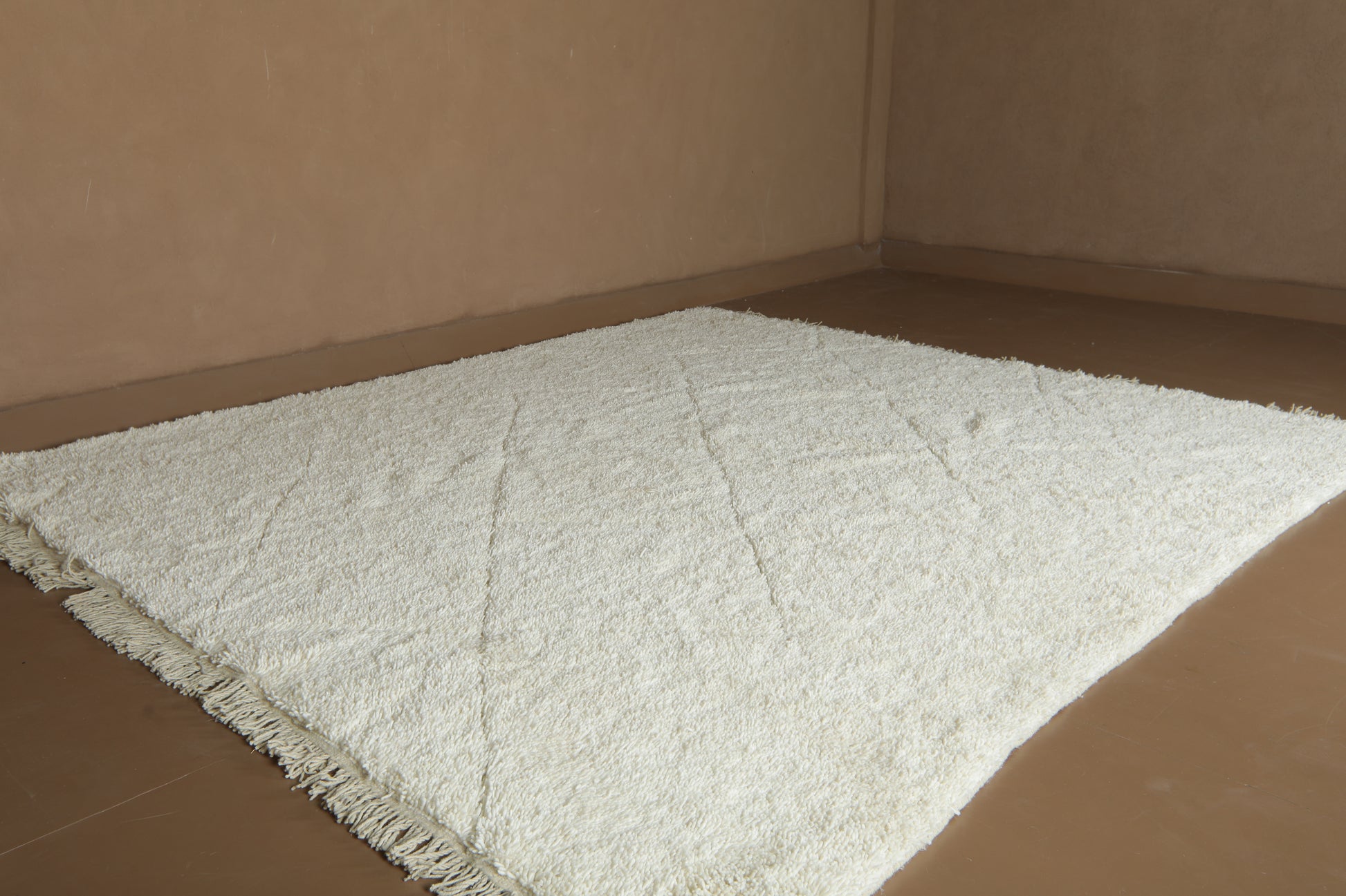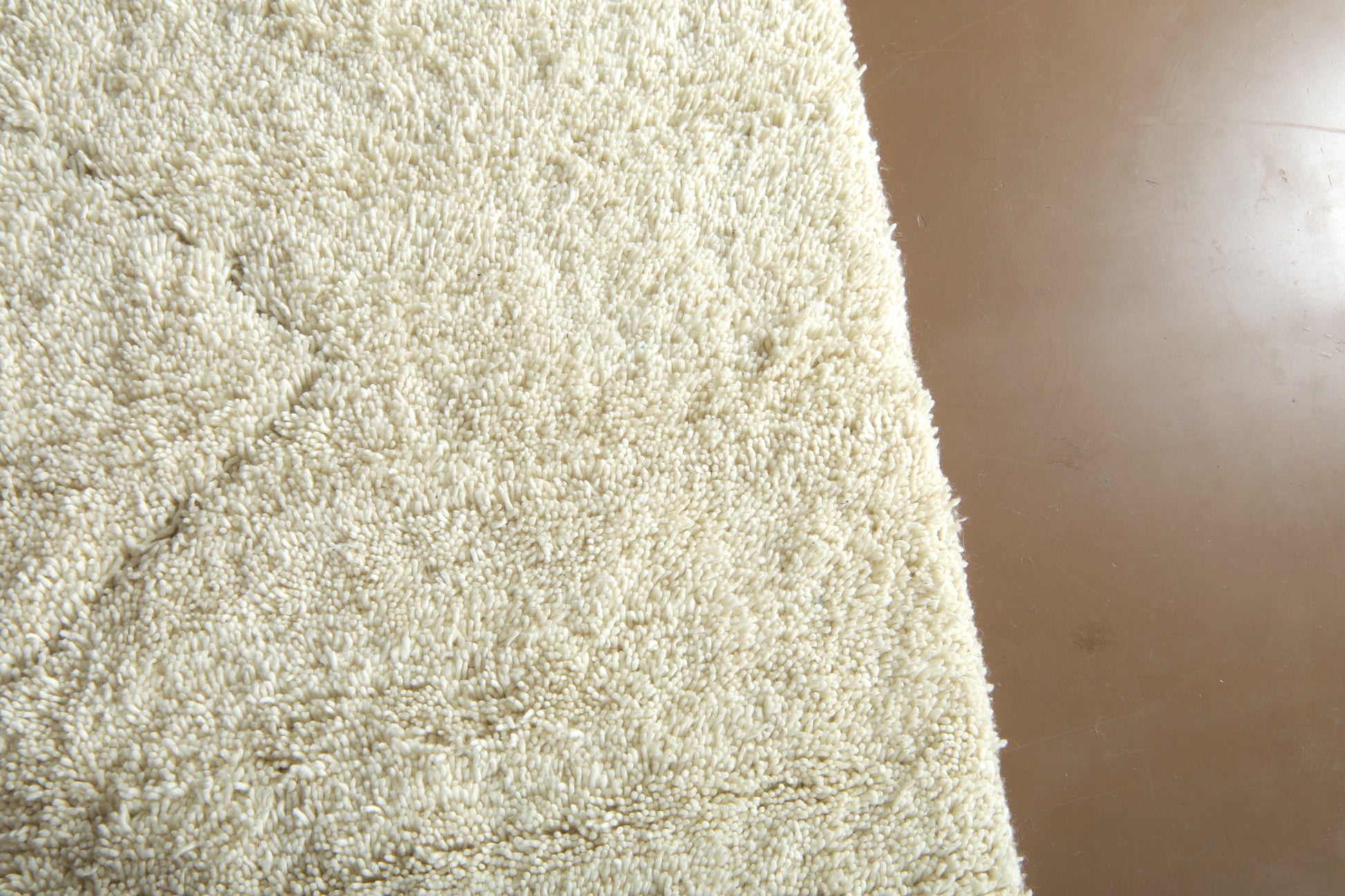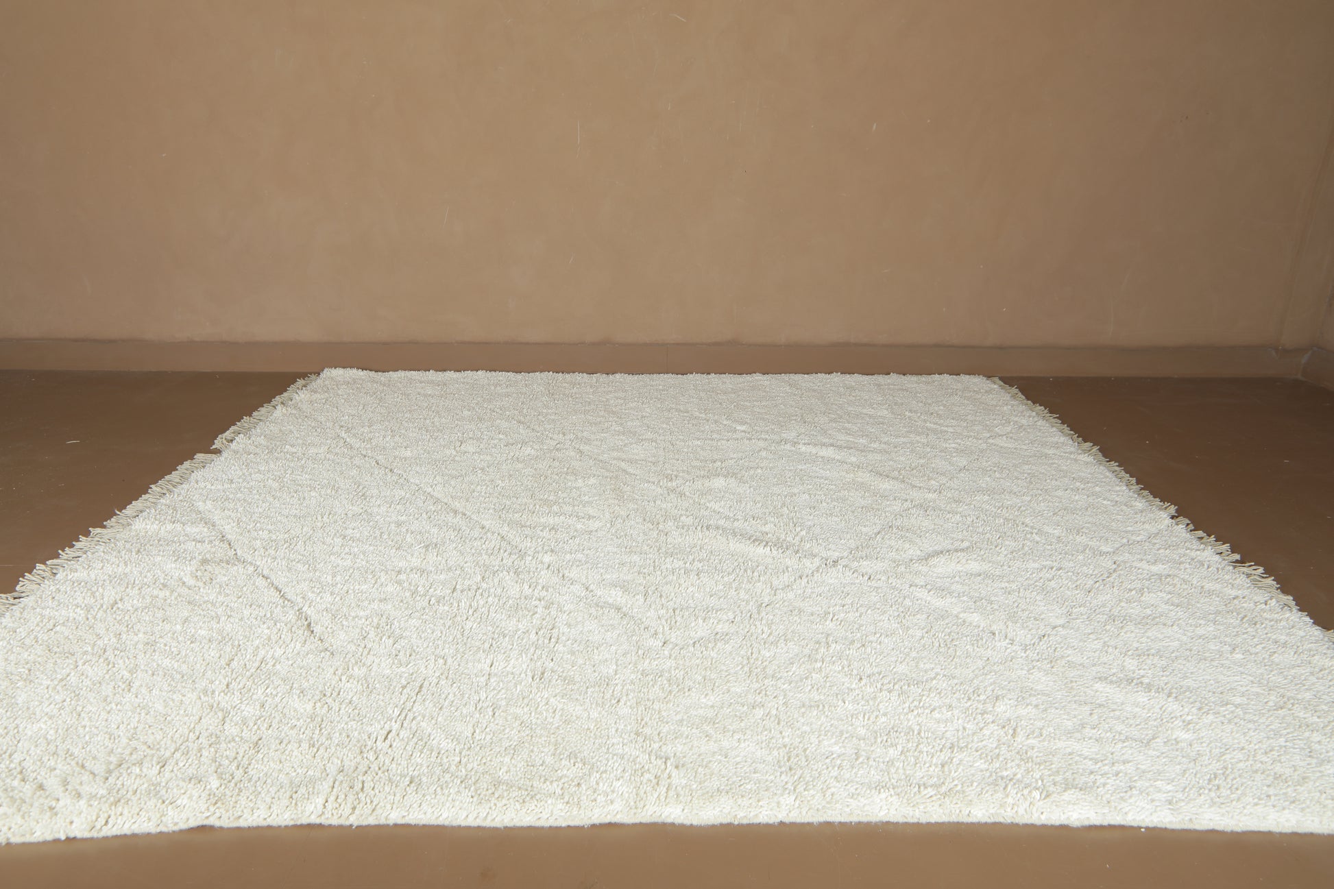 Introduce a touch of serenity to your home with this beautifully handcrafted Moroccan rug, featuring a soft ivory hue that complements any decor. Made from 100% natural wool, this plush rug showcases a subtle diamond pattern, adding texture and sophistication to your space.
