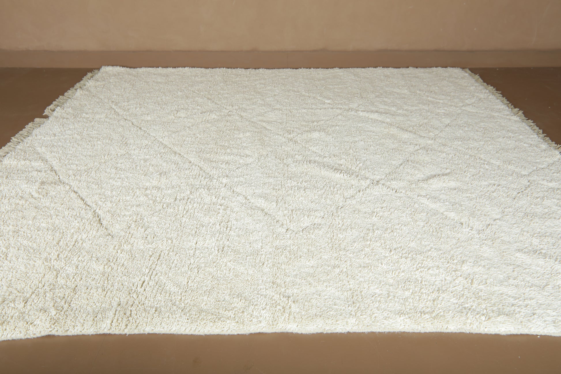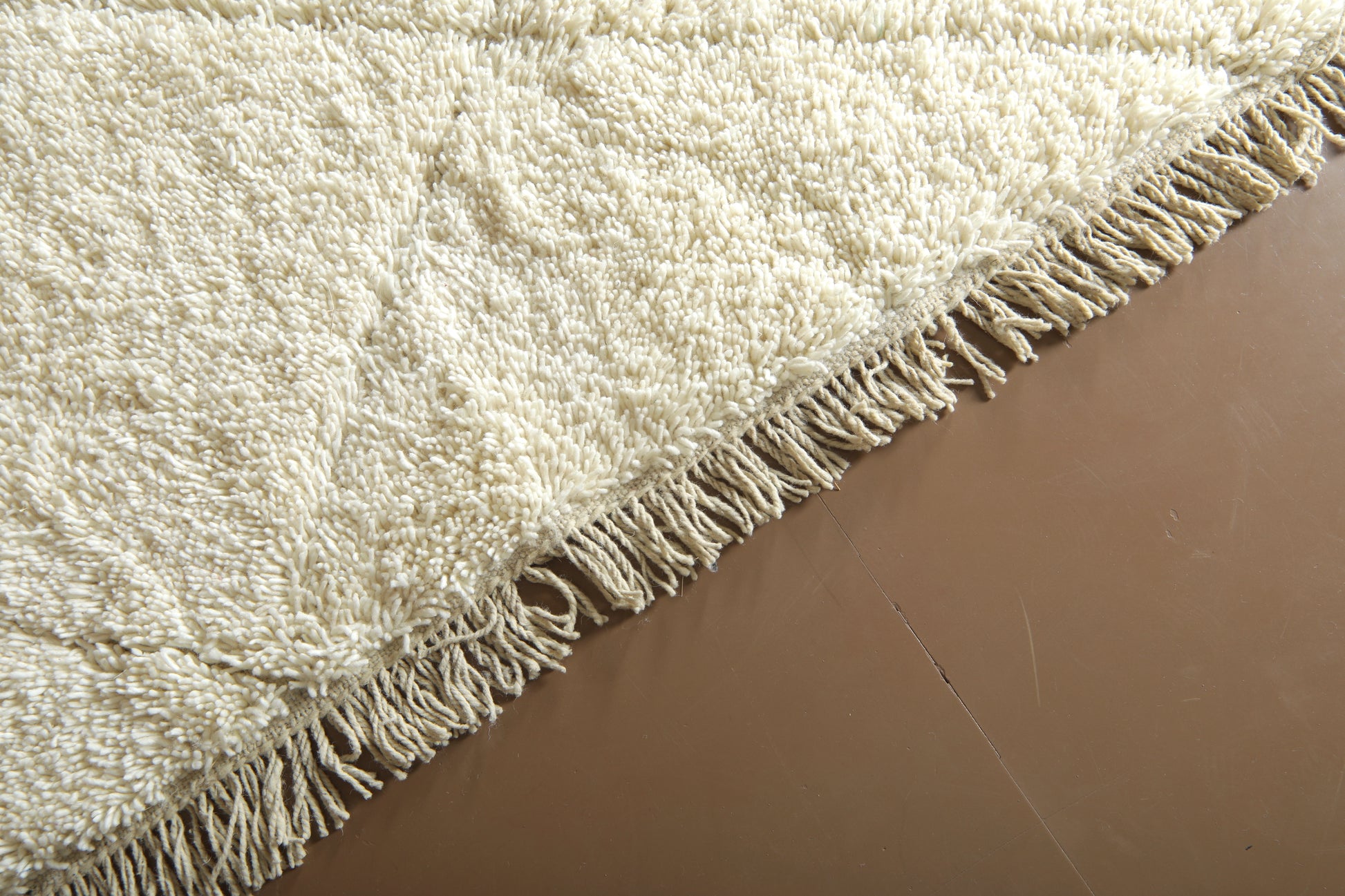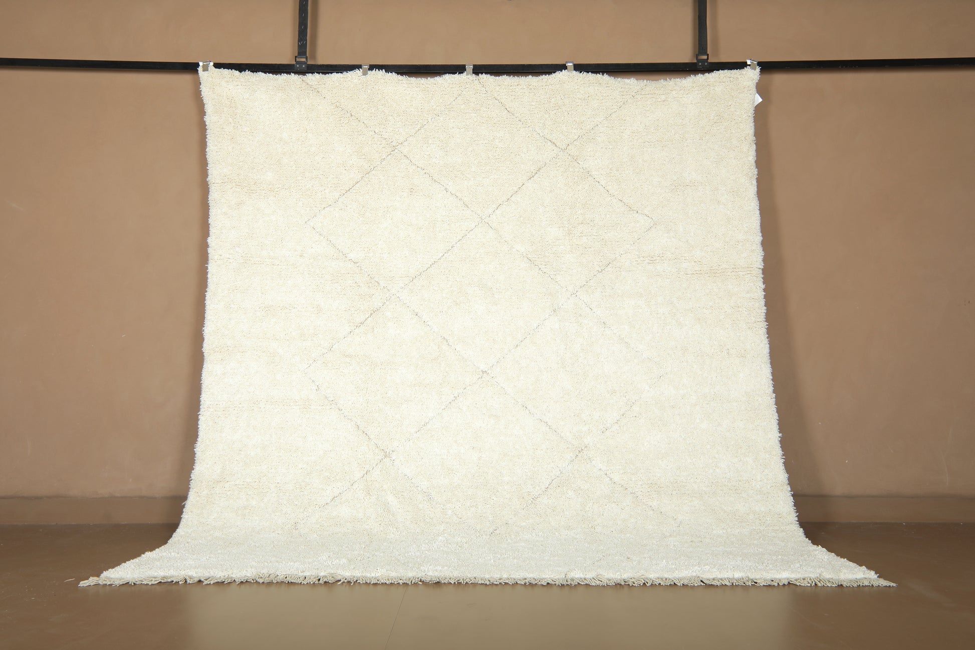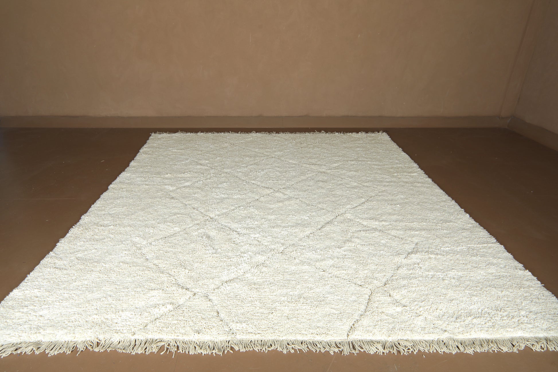 Introduce a touch of serenity to your home with this beautifully handcrafted Moroccan rug, featuring a soft ivory hue that complements any decor. Made from 100% natural wool, this plush rug showcases a subtle diamond pattern, adding texture and sophistication to your space.