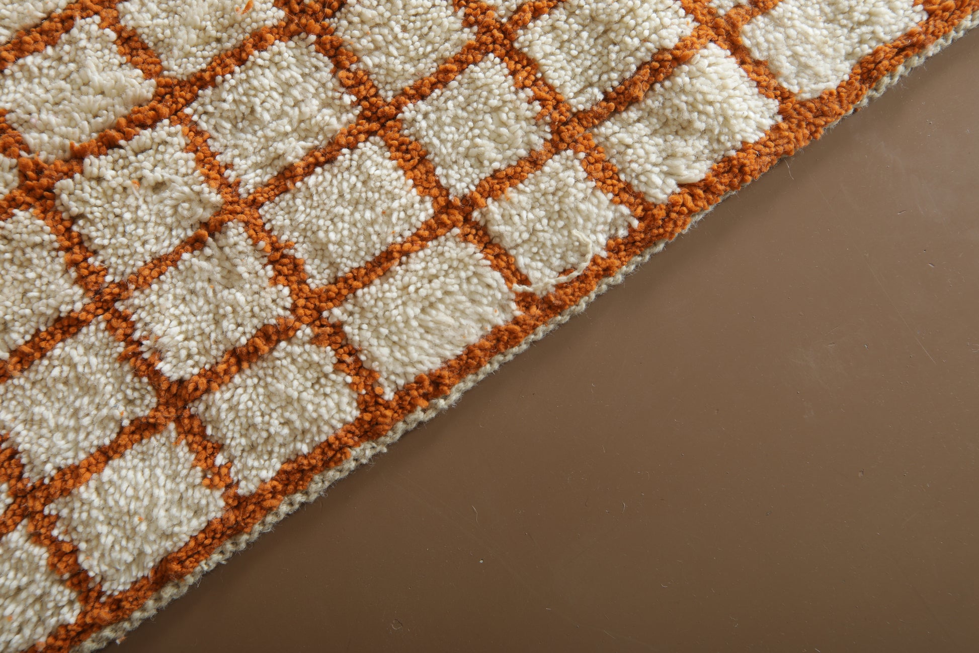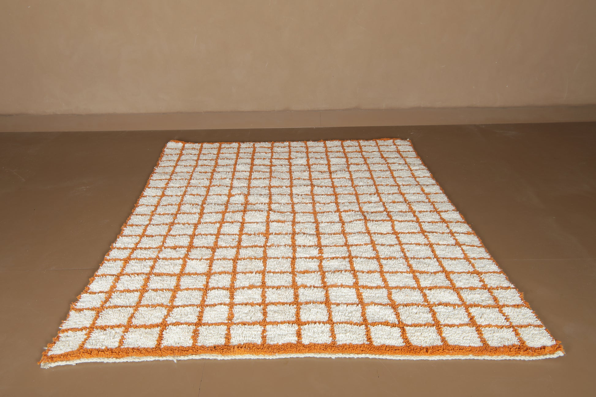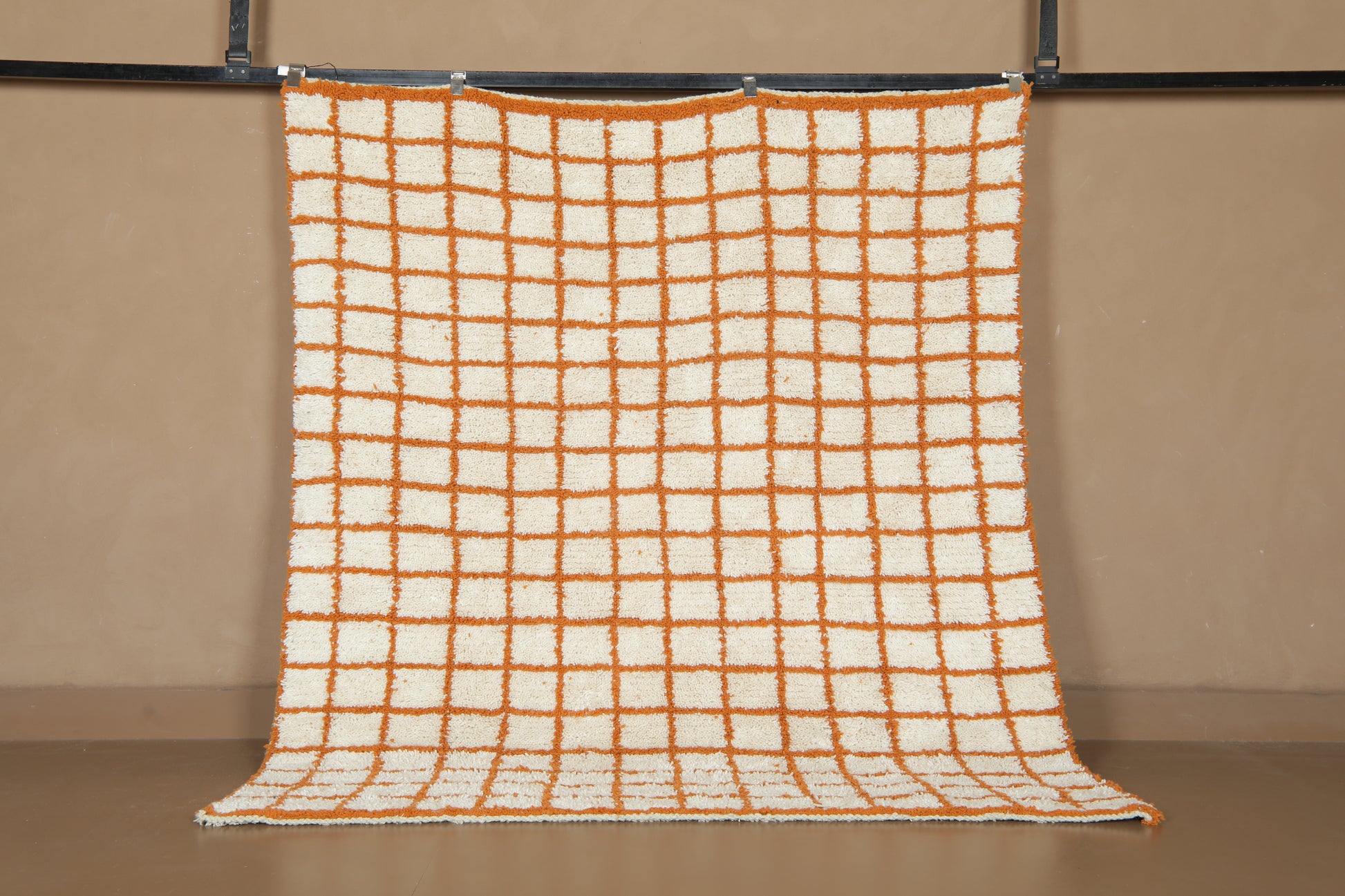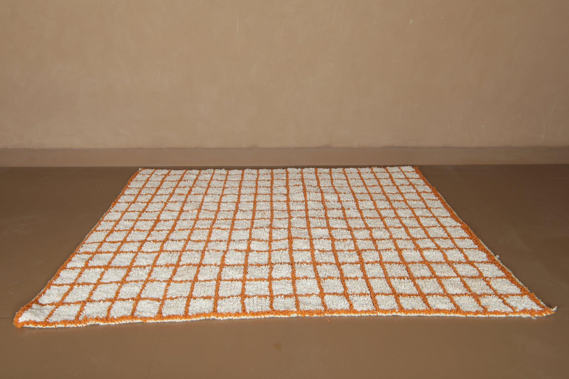 Structured yet soulful — this handcrafted Moroccan rug blends timeless Amazigh craftsmanship with clean, modern geometry. An ivory-white base is intersected by fine terracotta lines, creating a perfectly imperfect grid that adds rhythm, balance, and warmth to your interior.
