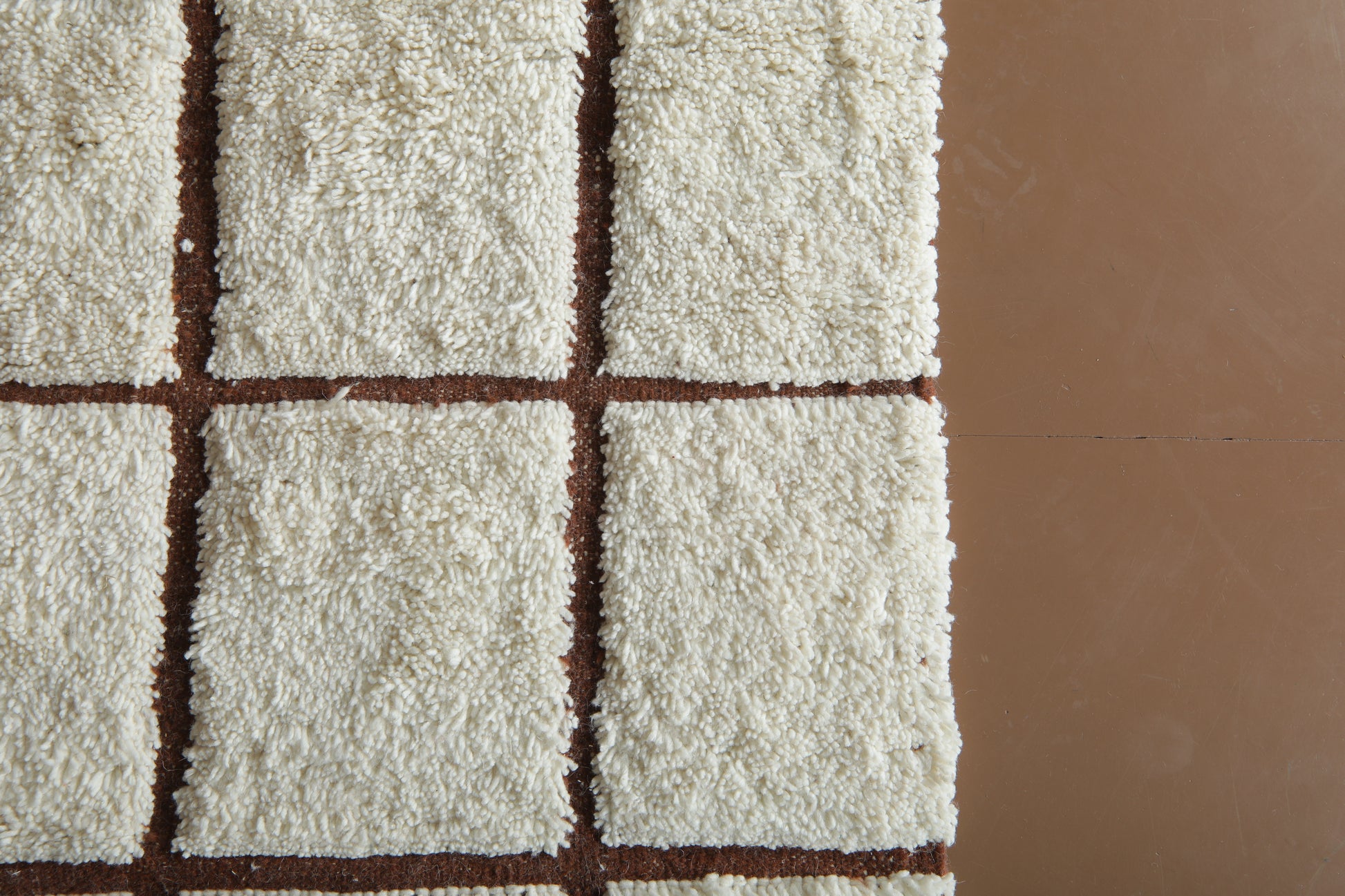 Expertly woven by Moroccan artisans, each rug is made from 100% natural wool , known for its softness, durability, and ability to stay beautiful for years. The timeless check pattern brings visual balance and calm to your living space while maintaining a cozy and inviting atmosphere.