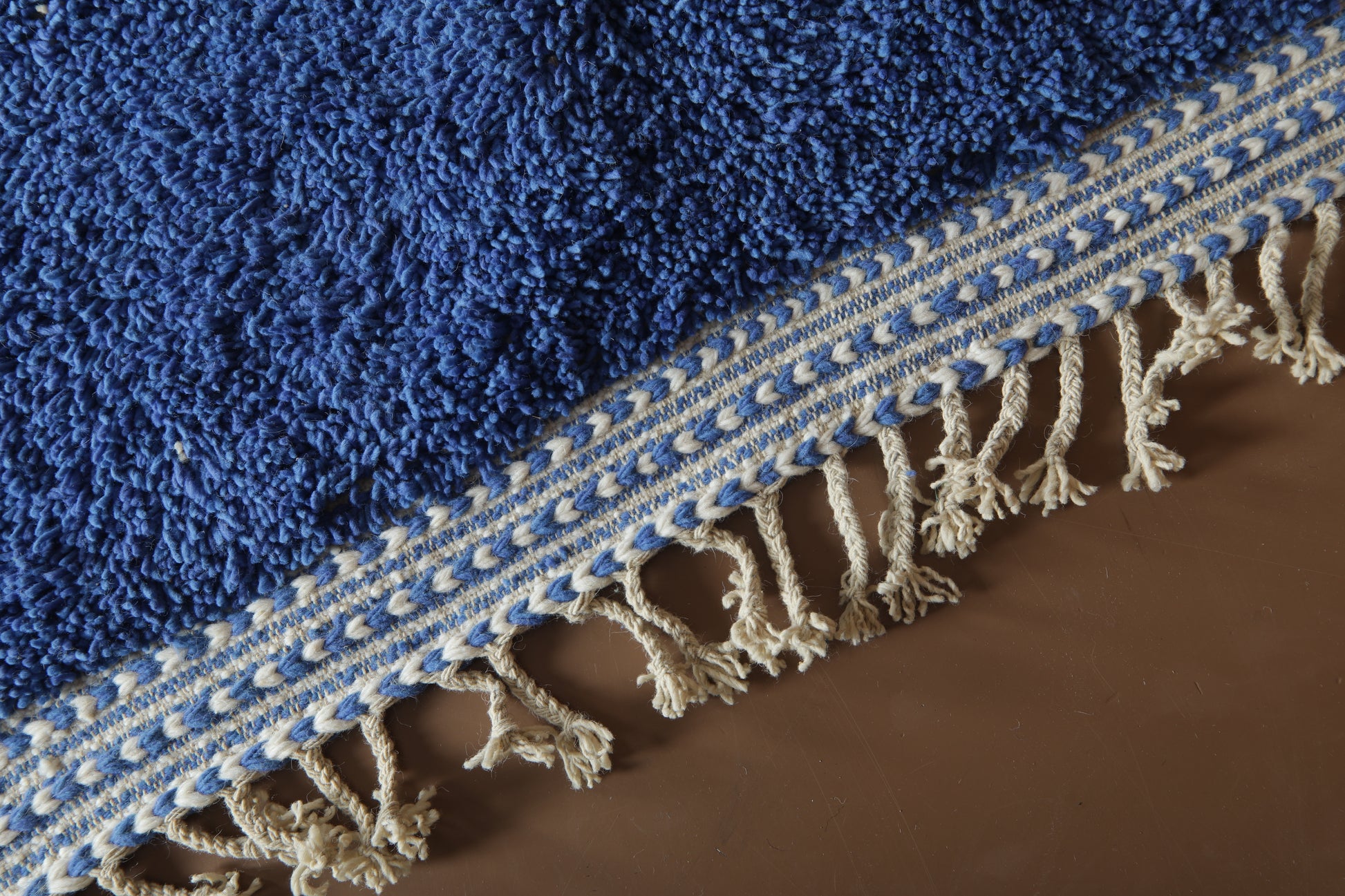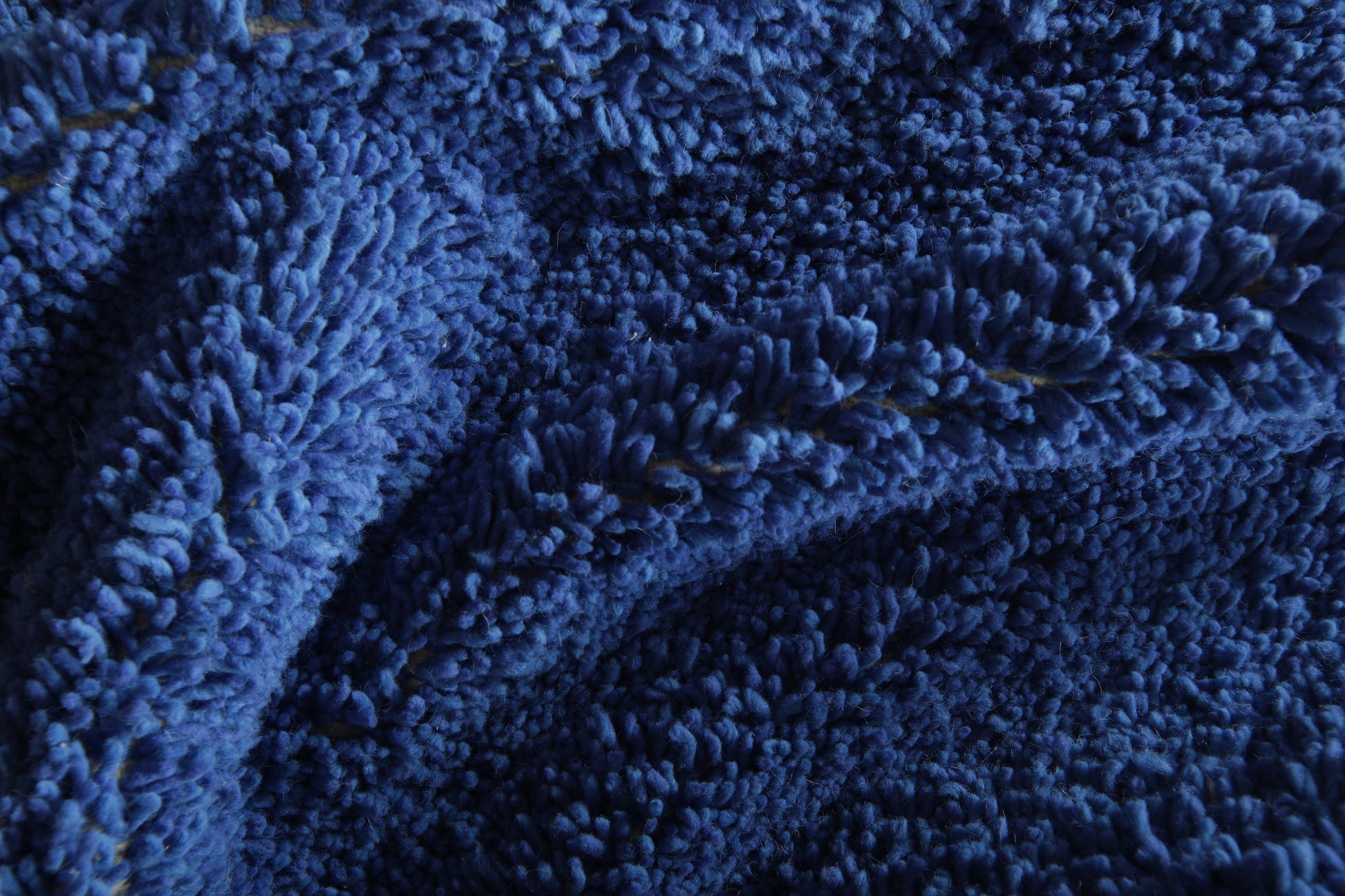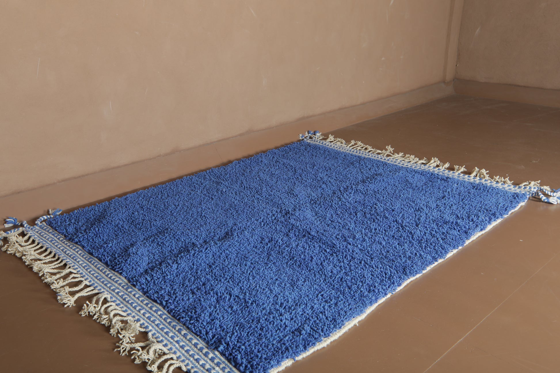Add a bold touch of Moroccan artistry to your home with this handmade royal blue rug, crafted from 100% natural wool. The deep blue hue brings a sense of calm and luxury, perfectly balancing tradition and modern design.