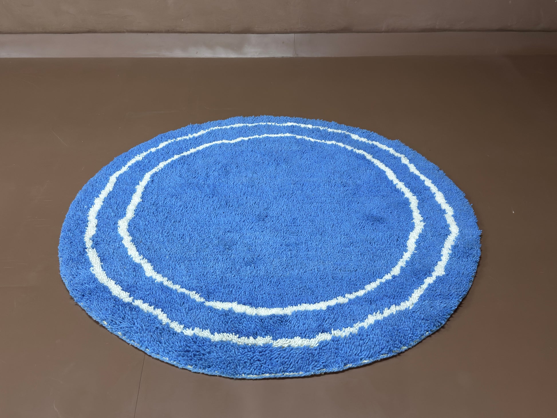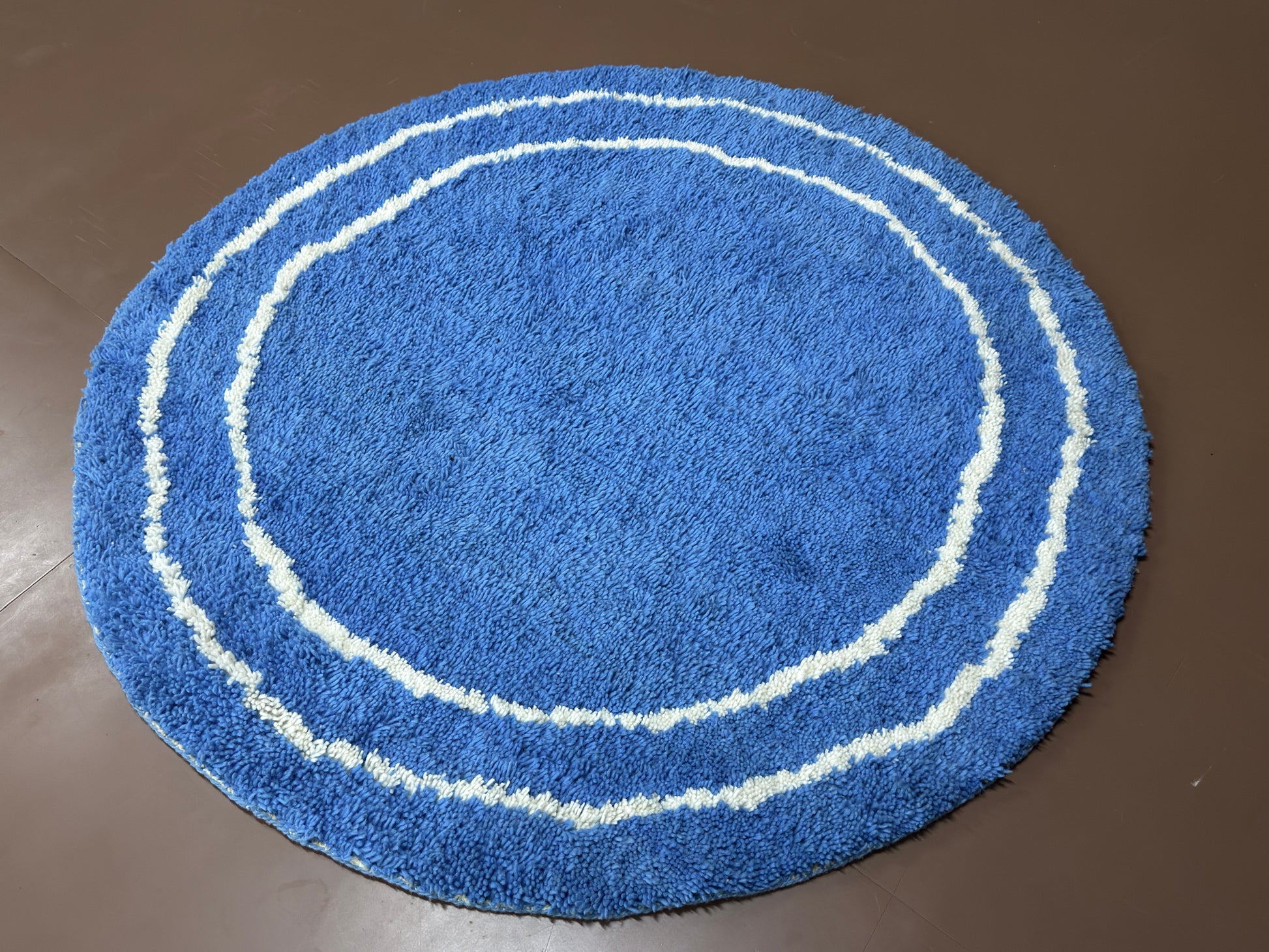 Handmade Moroccan rug - Round Blue Ripple Design - Custom Rug