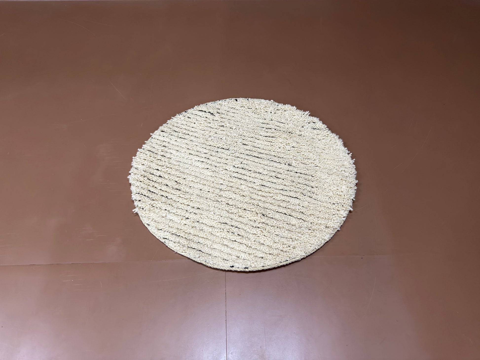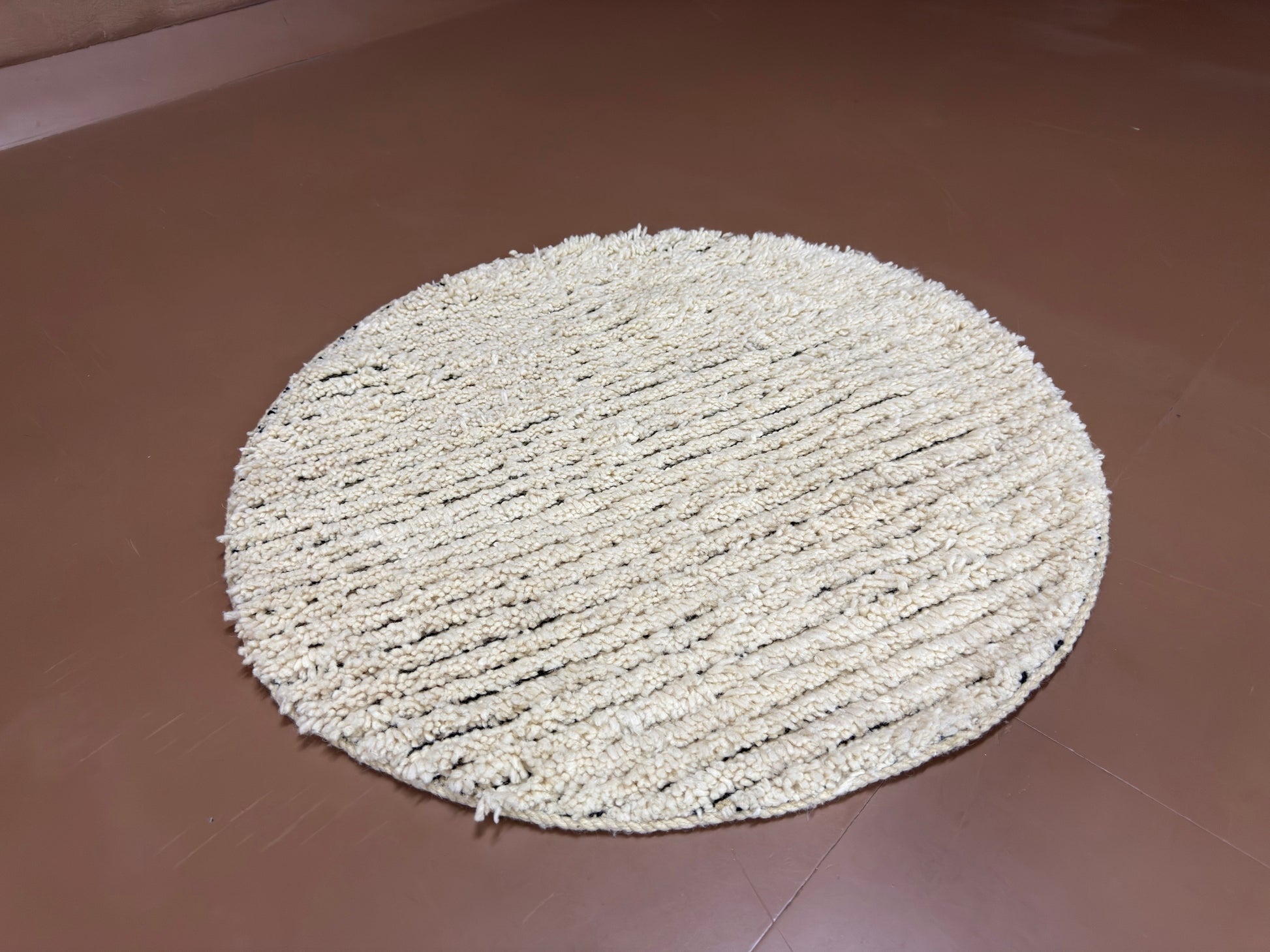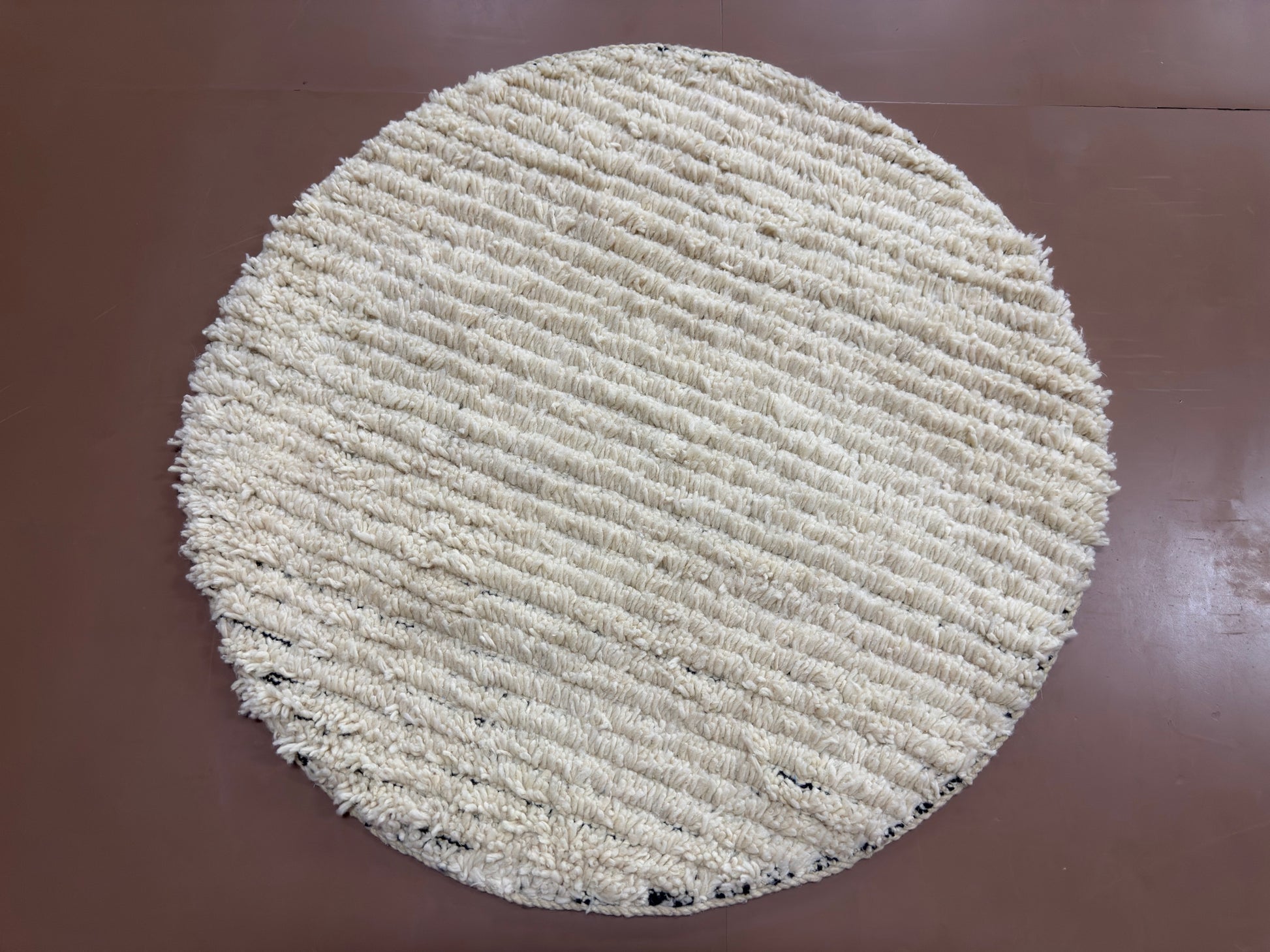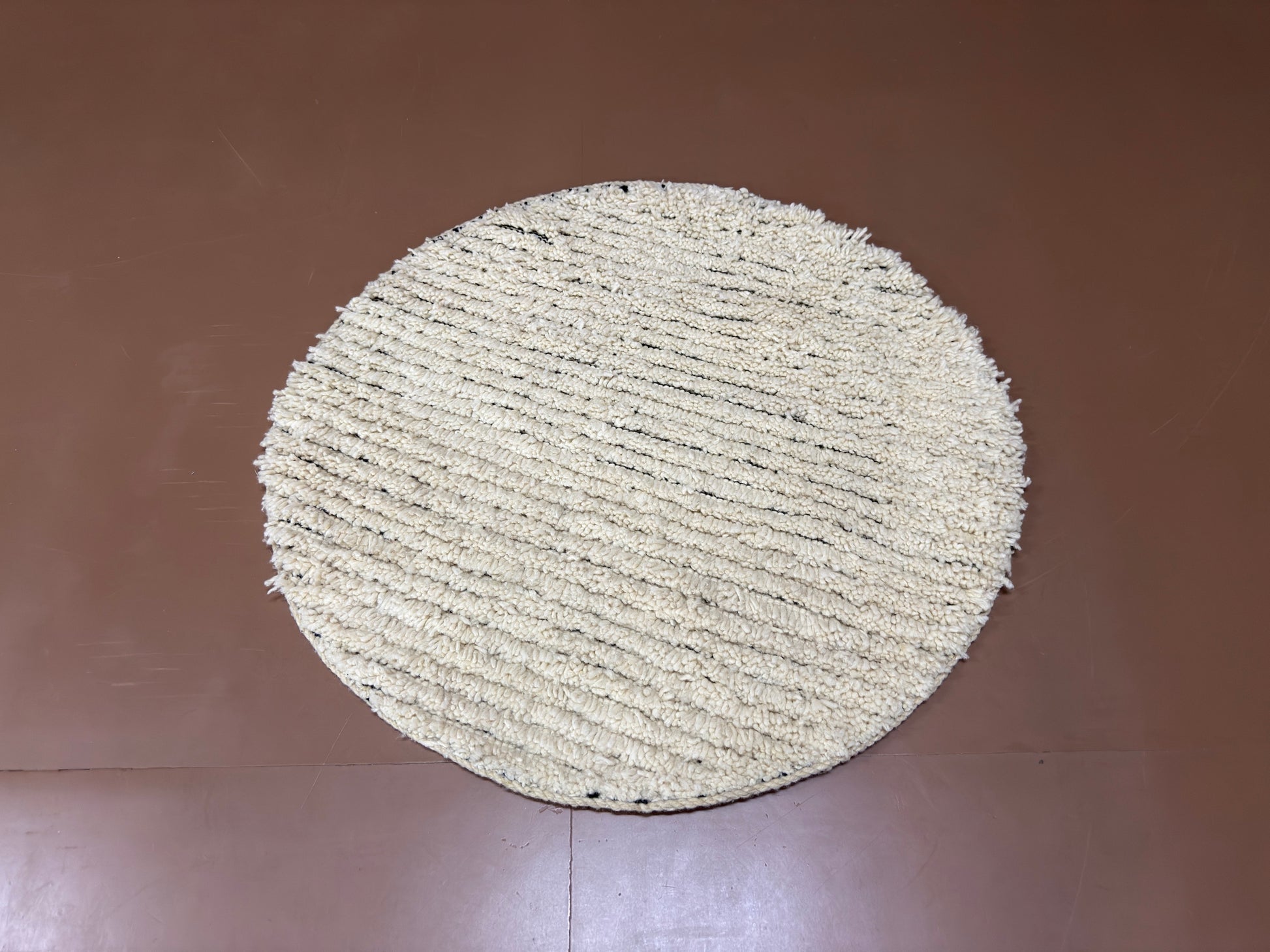 Elevate your space with the timeless charm of this handmade round Moroccan rug. Woven by skilled Berber artisans using traditional techniques, this custom rug blends minimalist design with authentic craftsmanship. Its round shape adds softness and harmony to any room, making it a perfect fit for living areas, bedrooms, or cozy corners.