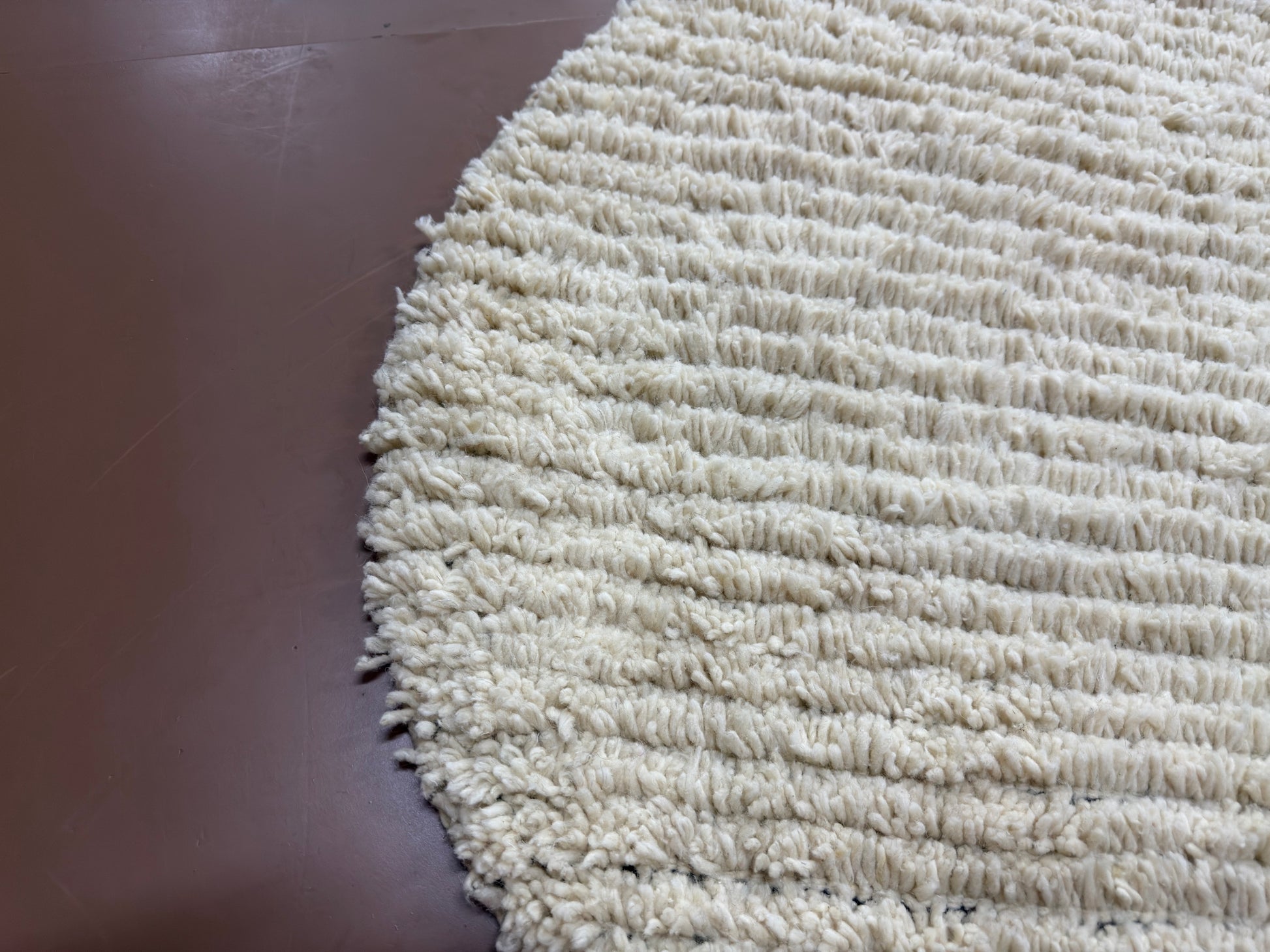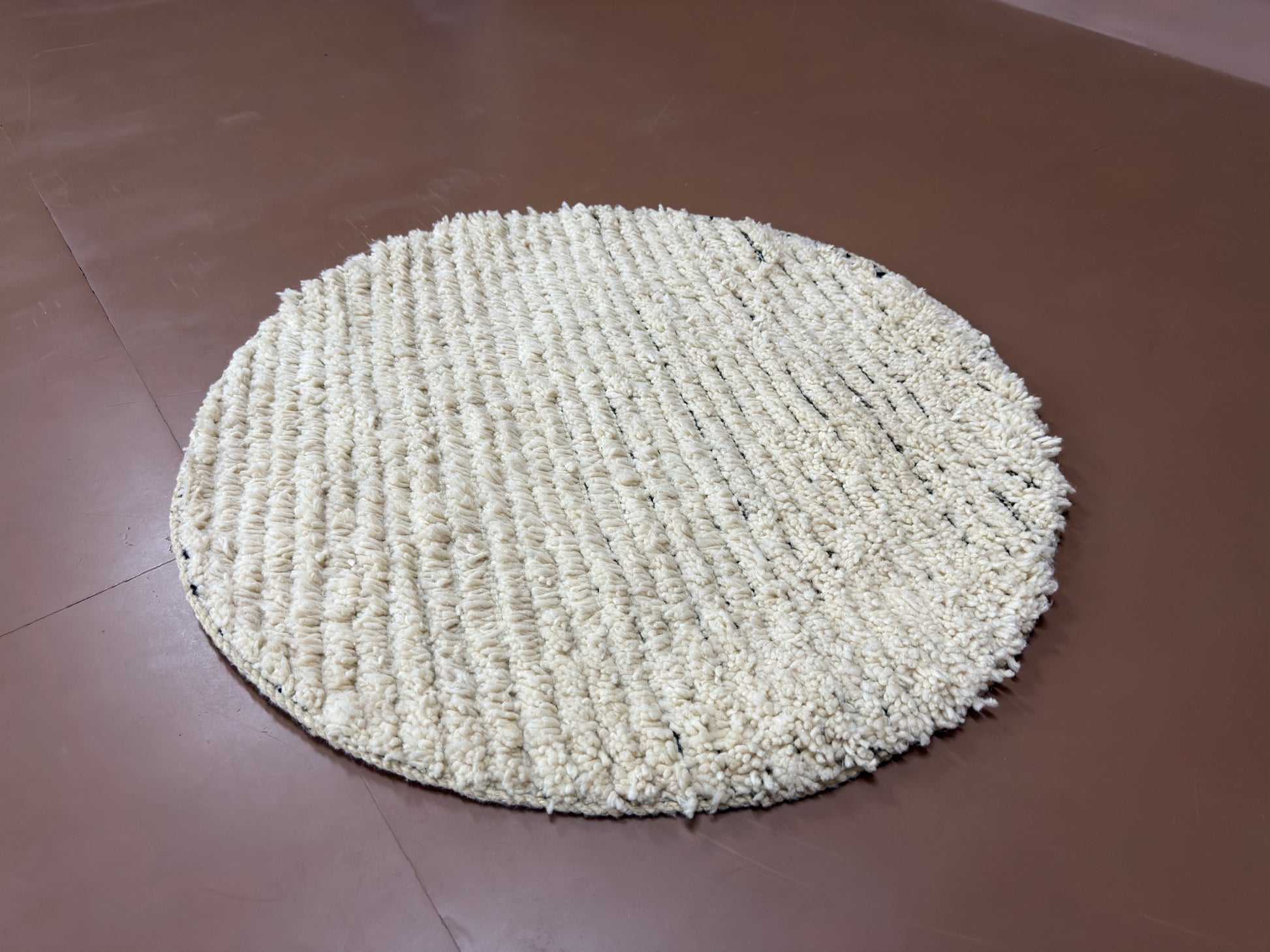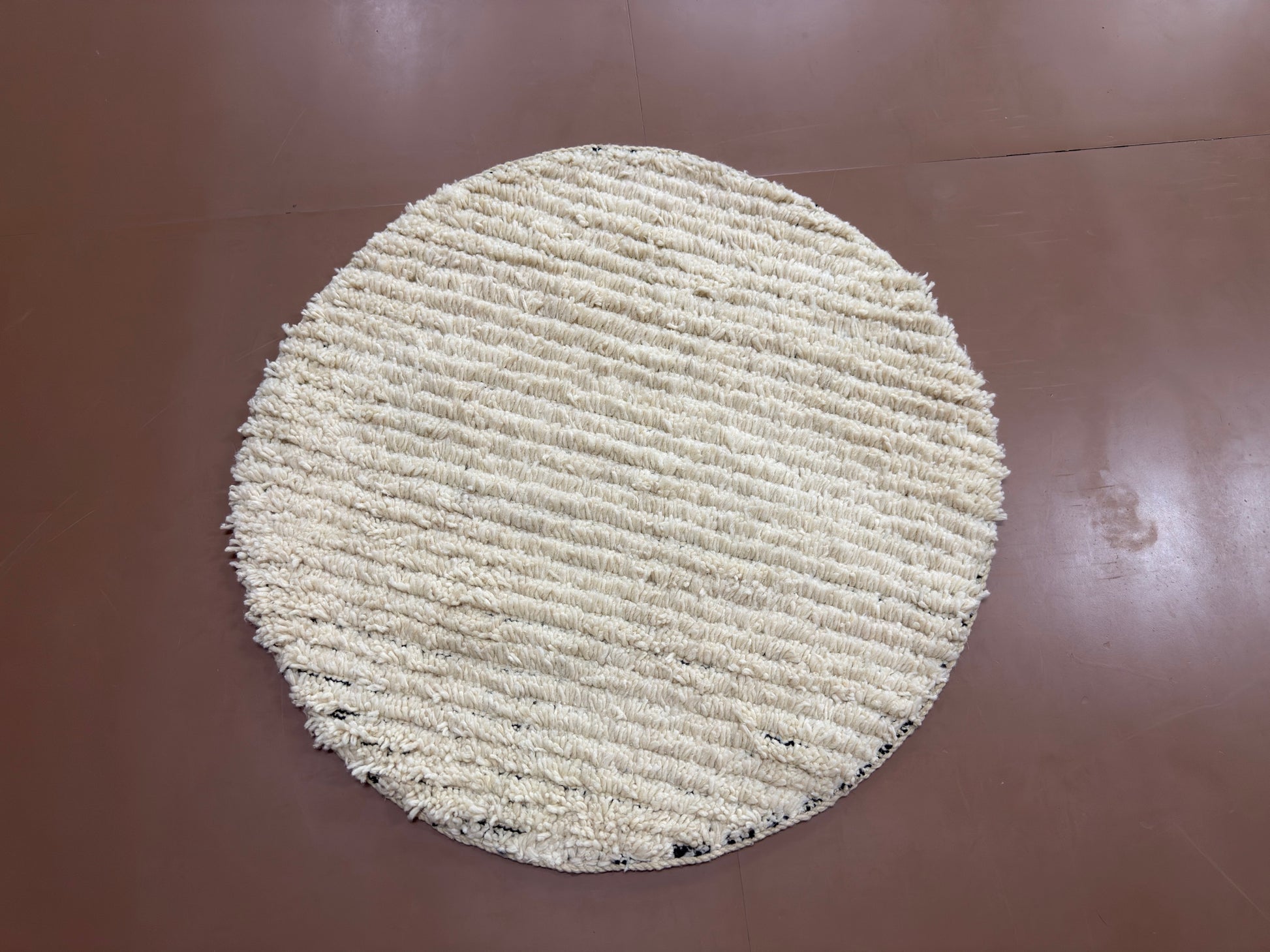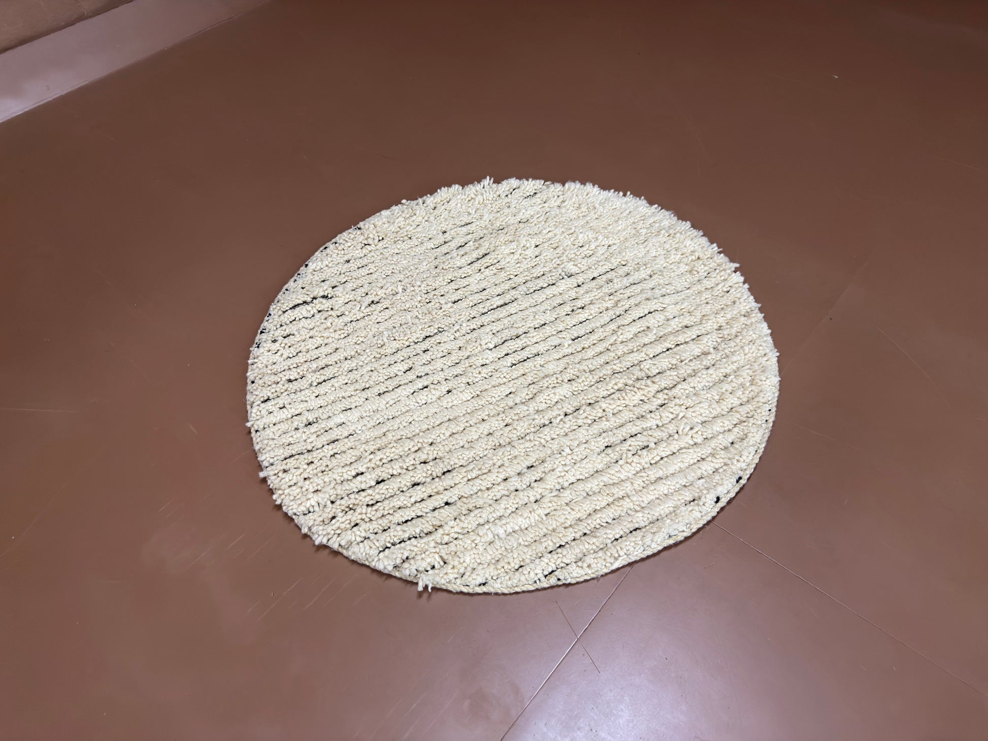 Elevate your space with the timeless charm of this handmade round Moroccan rug. Woven by skilled Berber artisans using traditional techniques, this custom rug blends minimalist design with authentic craftsmanship. Its round shape adds softness and harmony to any room, making it a perfect fit for living areas, bedrooms, or cozy corners.