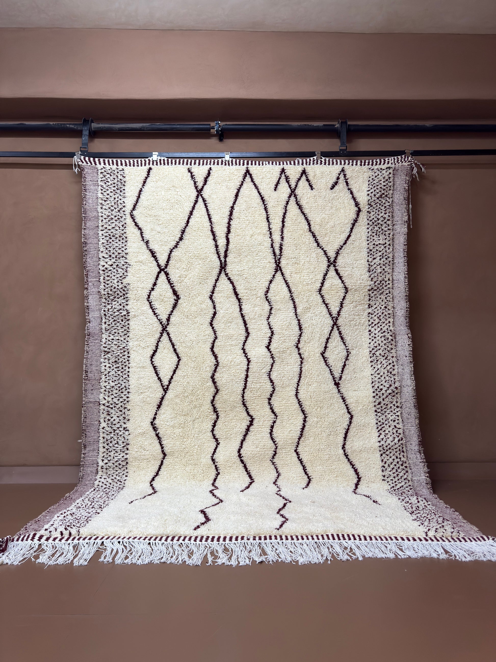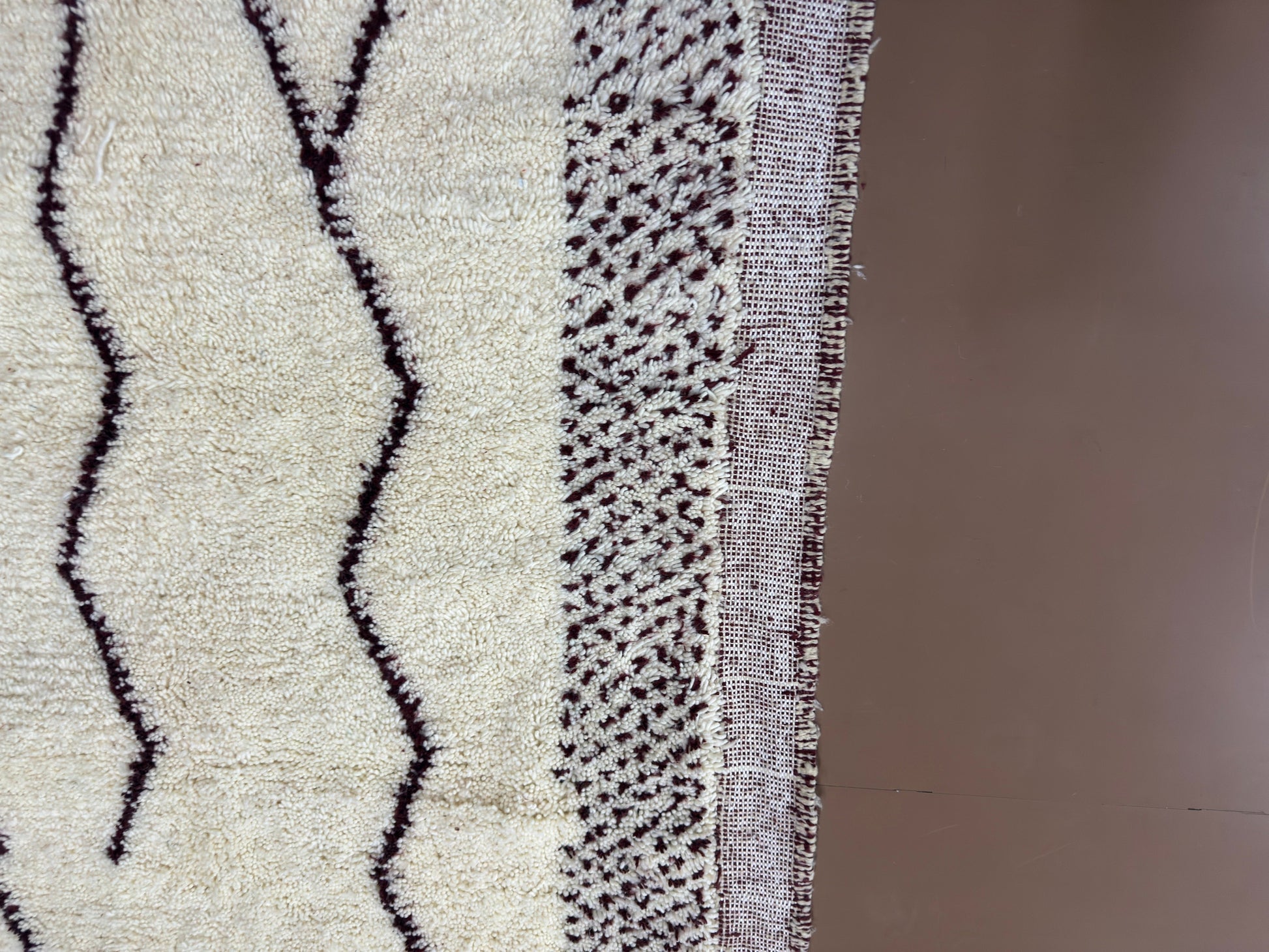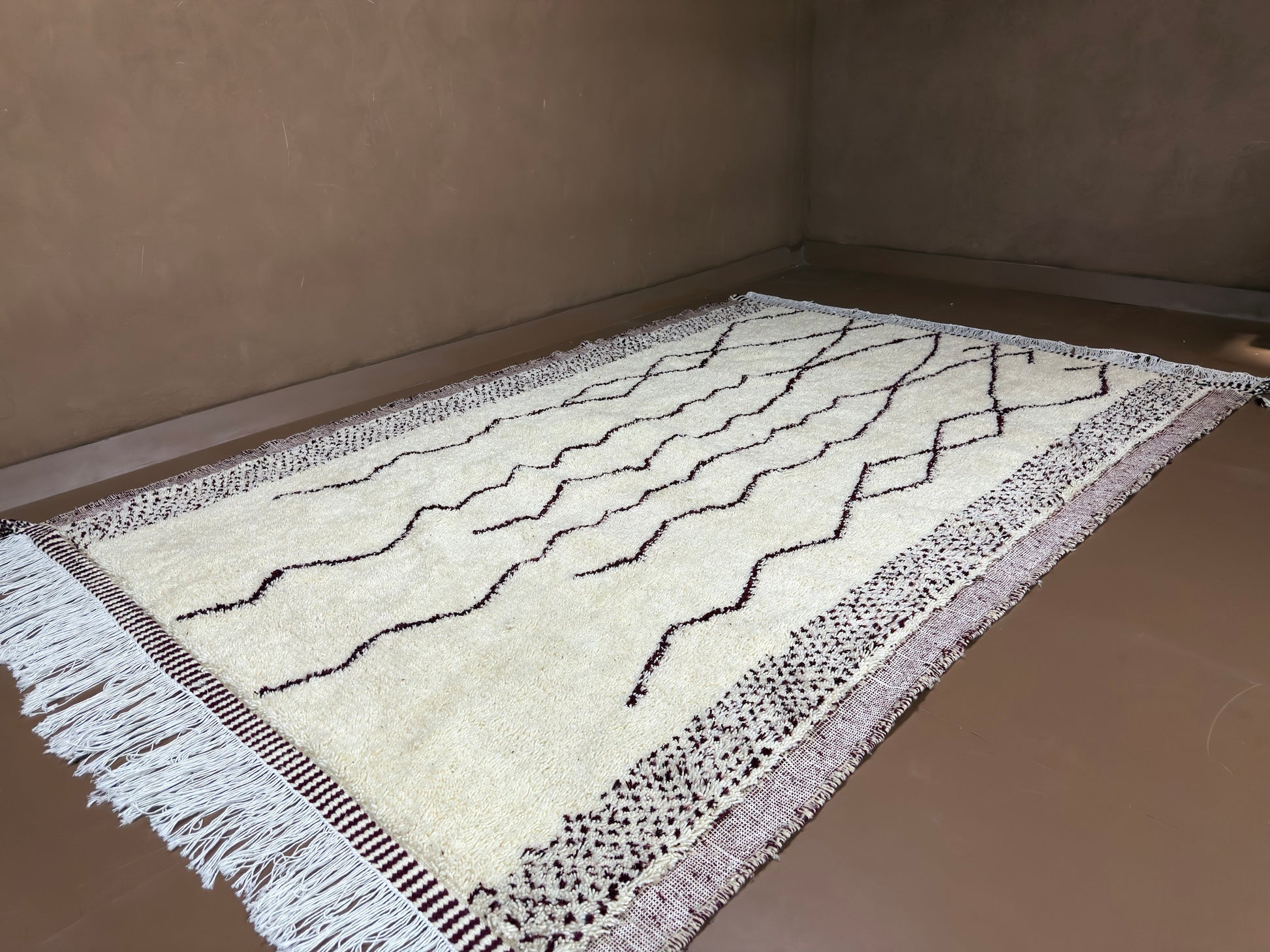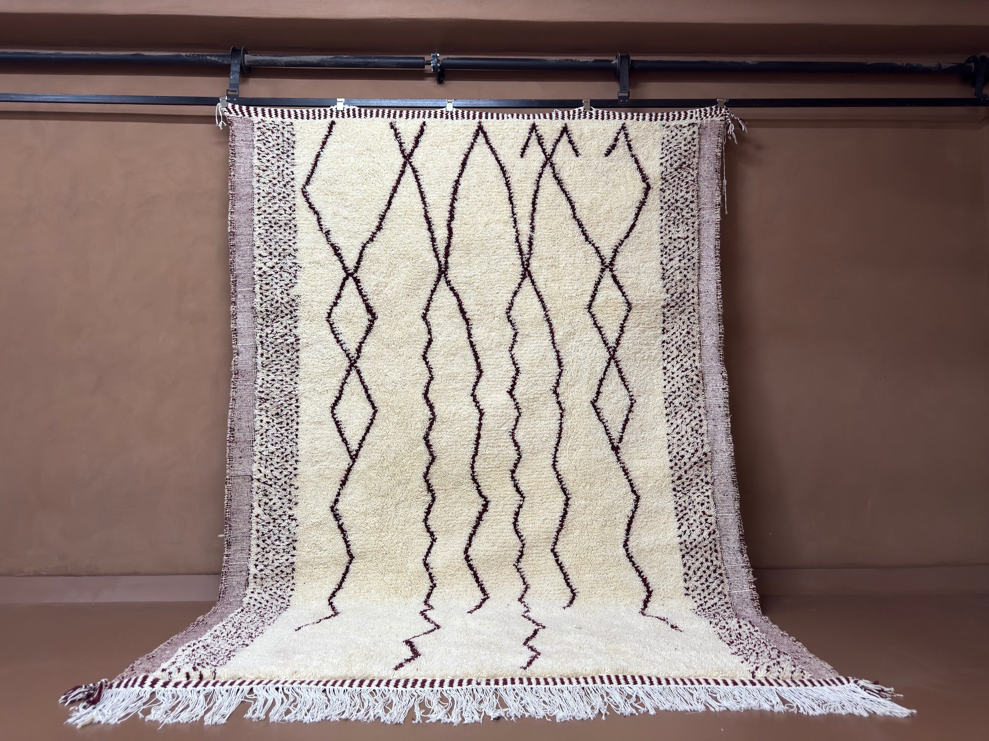This custom Moroccan rug blends timeless Berber artistry with minimalist elegance. Featuring delicately woven abstract motifs and patterned side borders, it brings depth and personality to any interior. Handwoven with care by Moroccan artisans, the rug’s subtle geometry and soft texture add warmth and refined structure to your space. Ideal for those who appreciate handcrafted beauty in modern, bohemian, or Nordic-style homes.