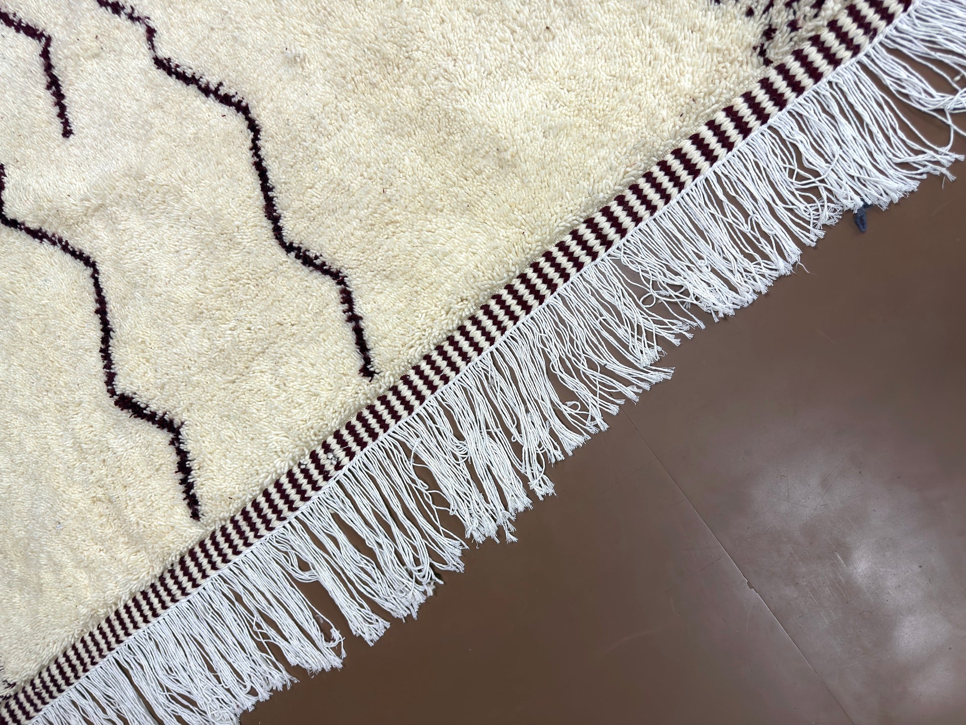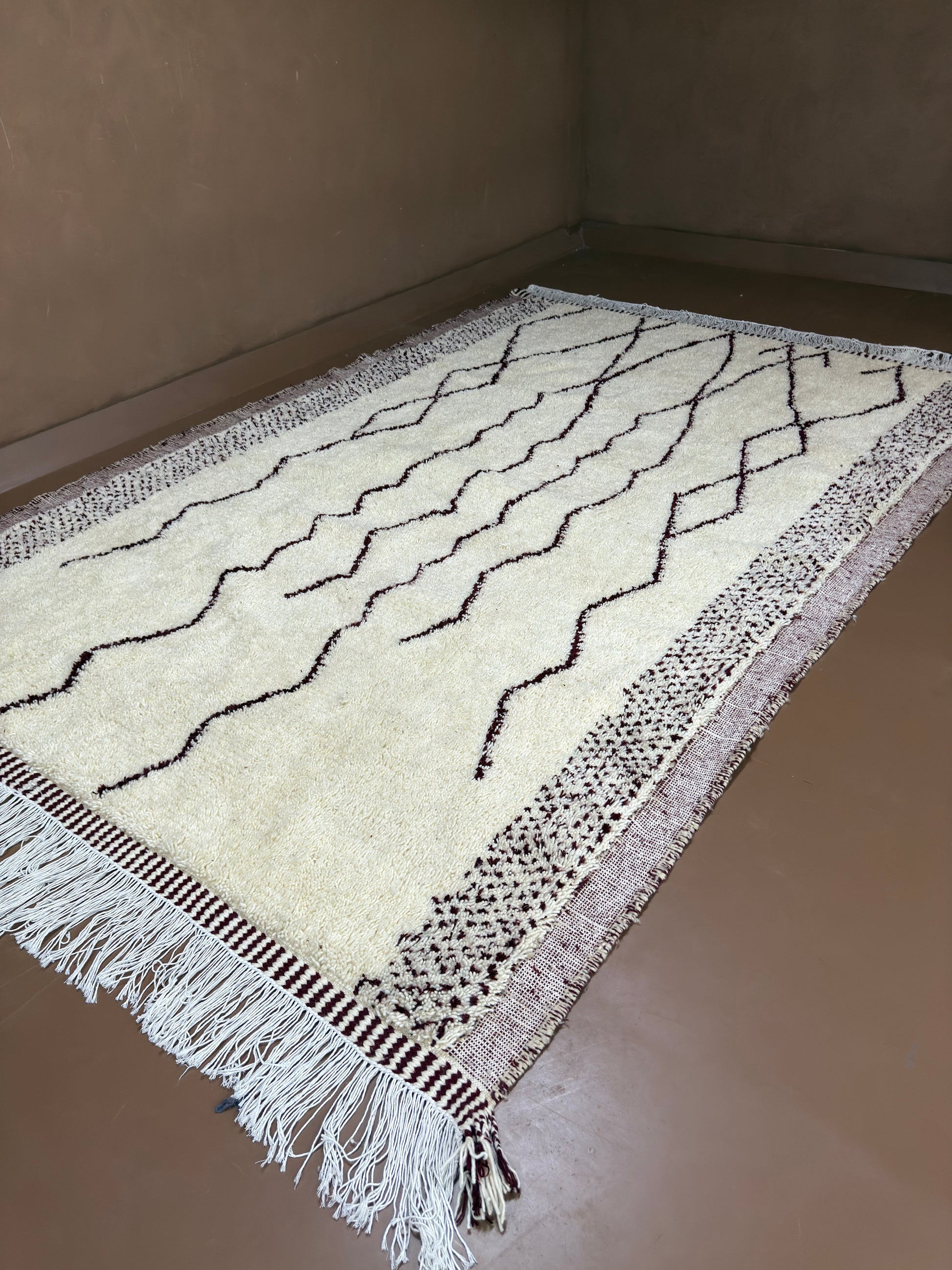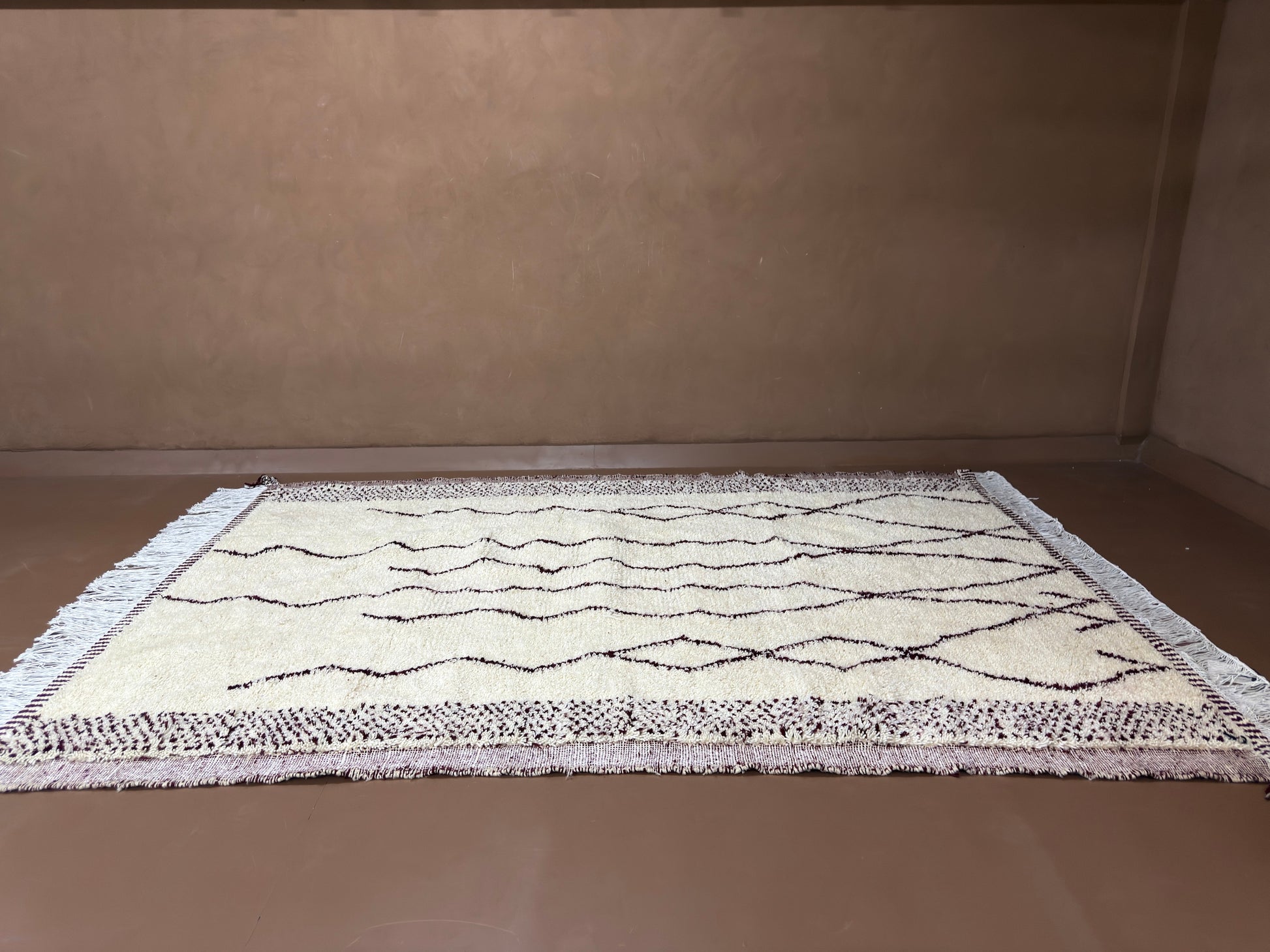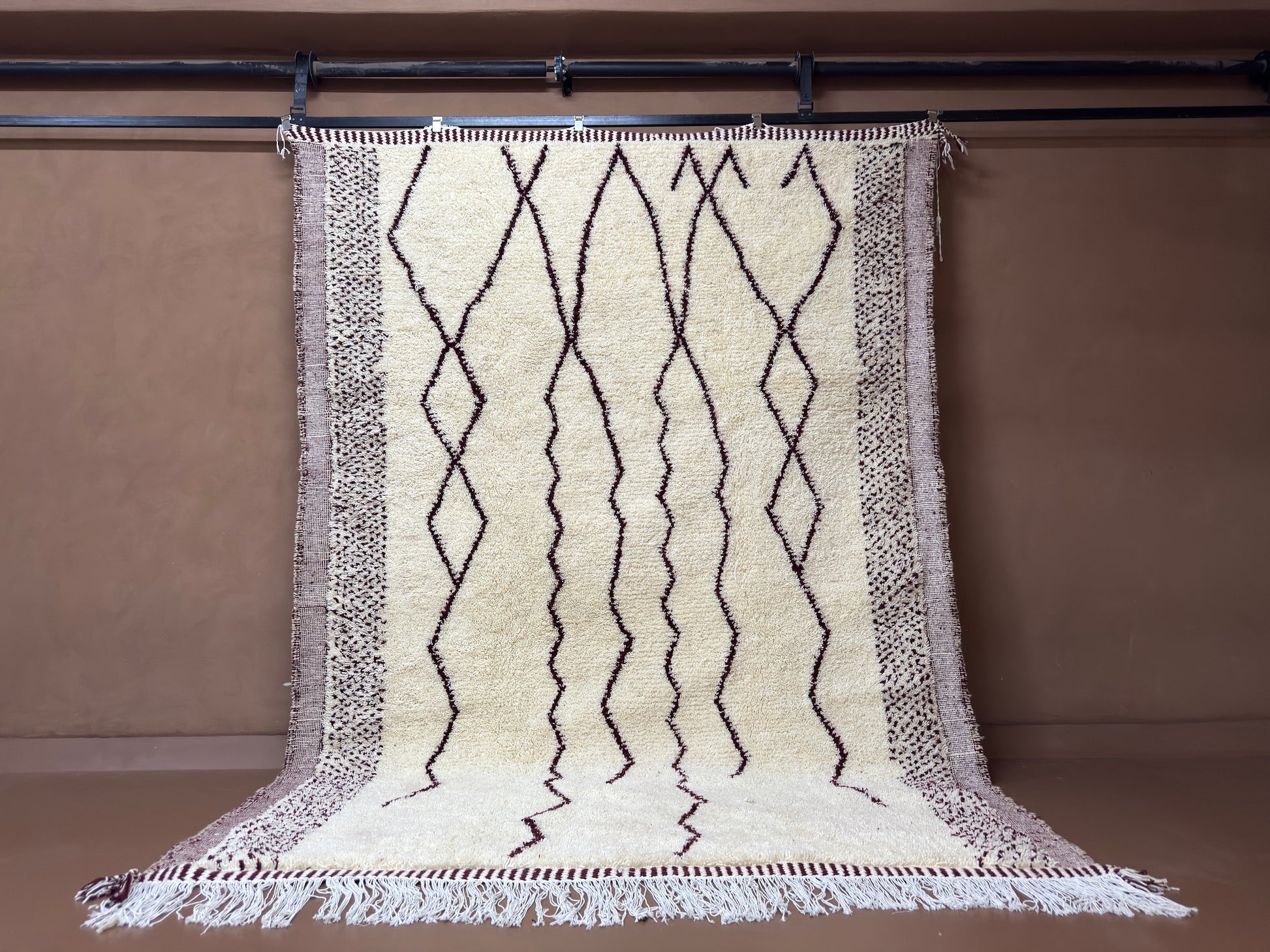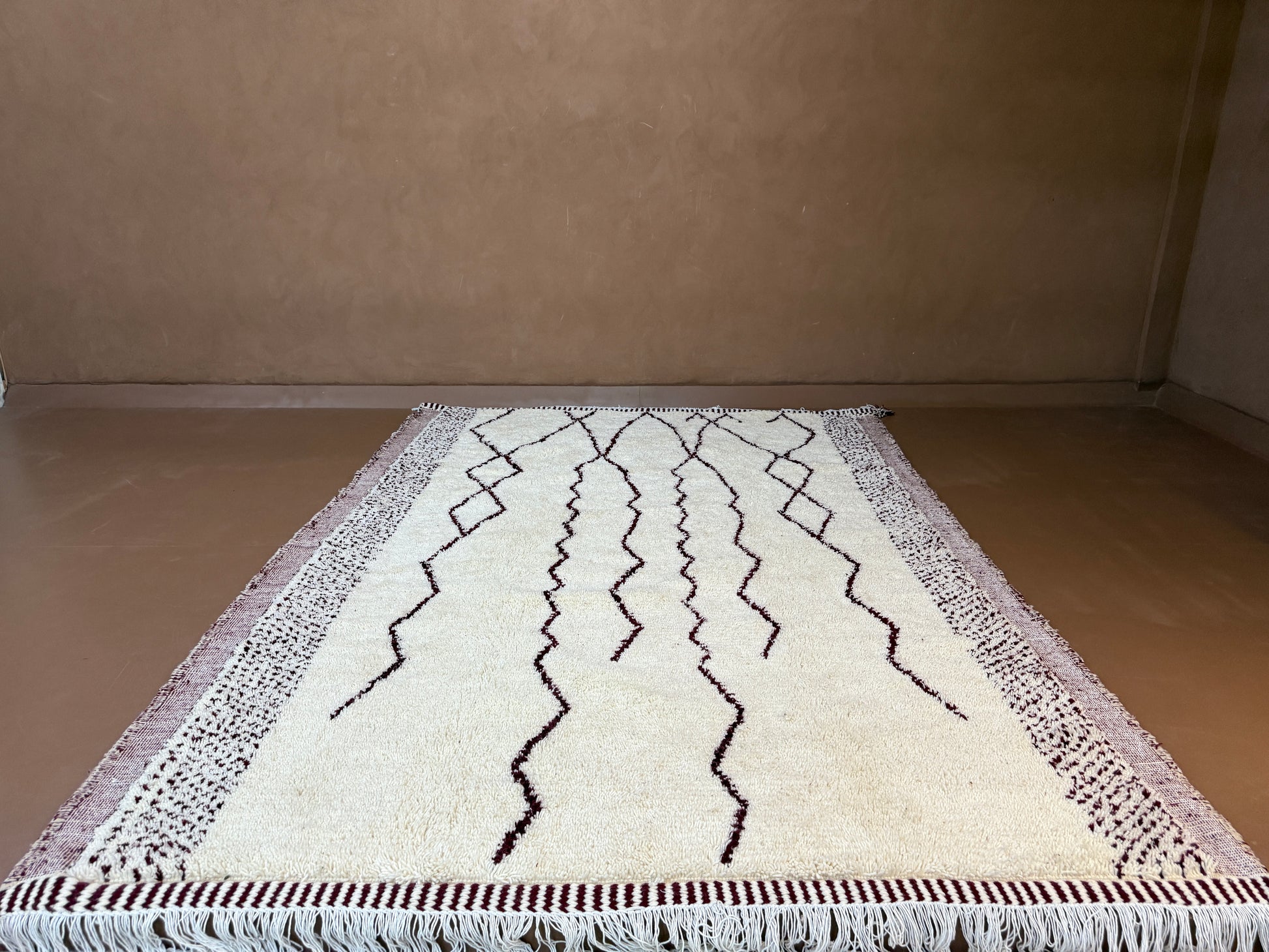 This custom Moroccan rug blends timeless Berber artistry with minimalist elegance. Featuring delicately woven abstract motifs and patterned side borders, it brings depth and personality to any interior. Handwoven with care by Moroccan artisans, the rug’s subtle geometry and soft texture add warmth and refined structure to your space. Ideal for those who appreciate handcrafted beauty in modern, bohemian, or Nordic-style homes.