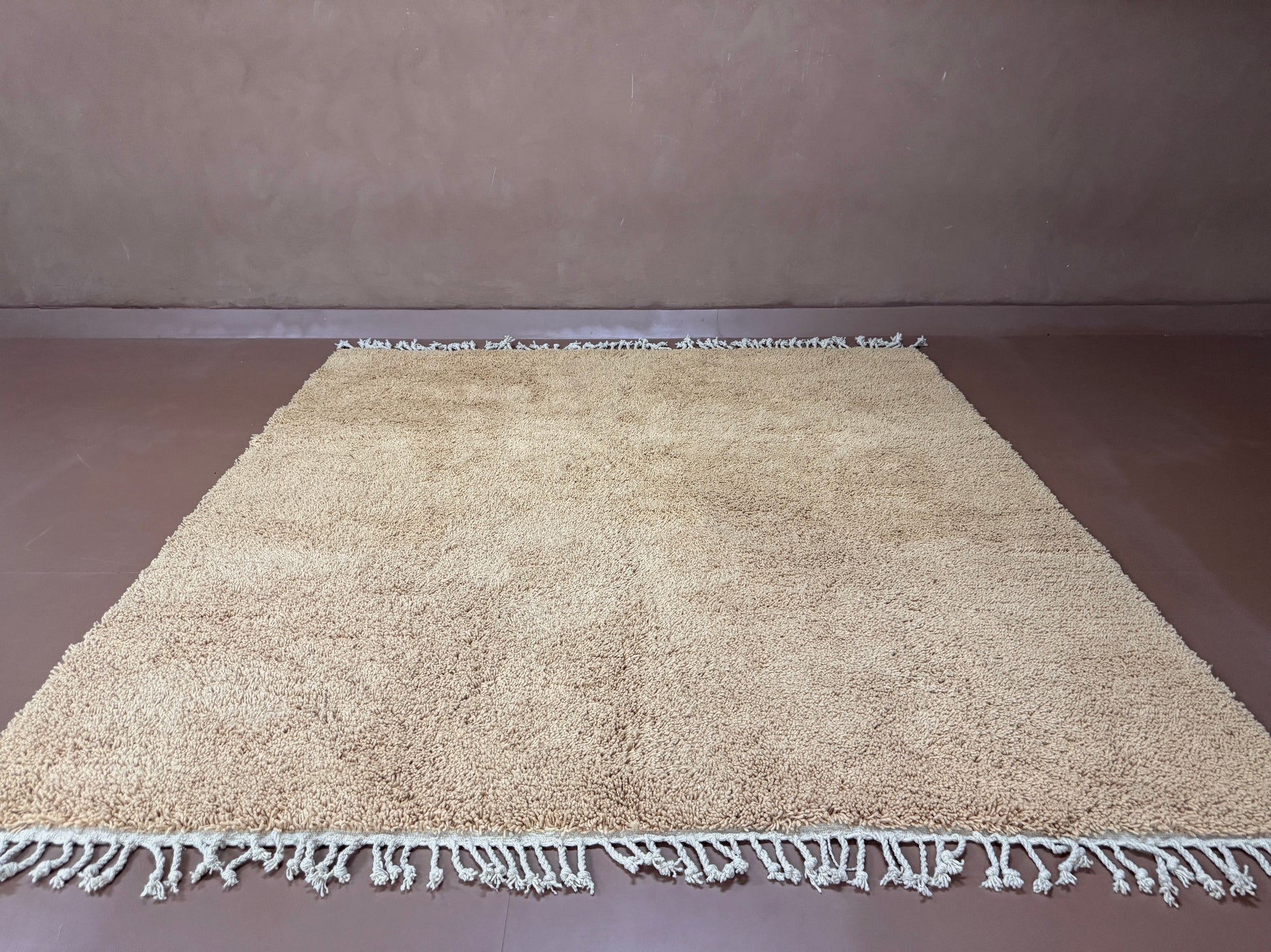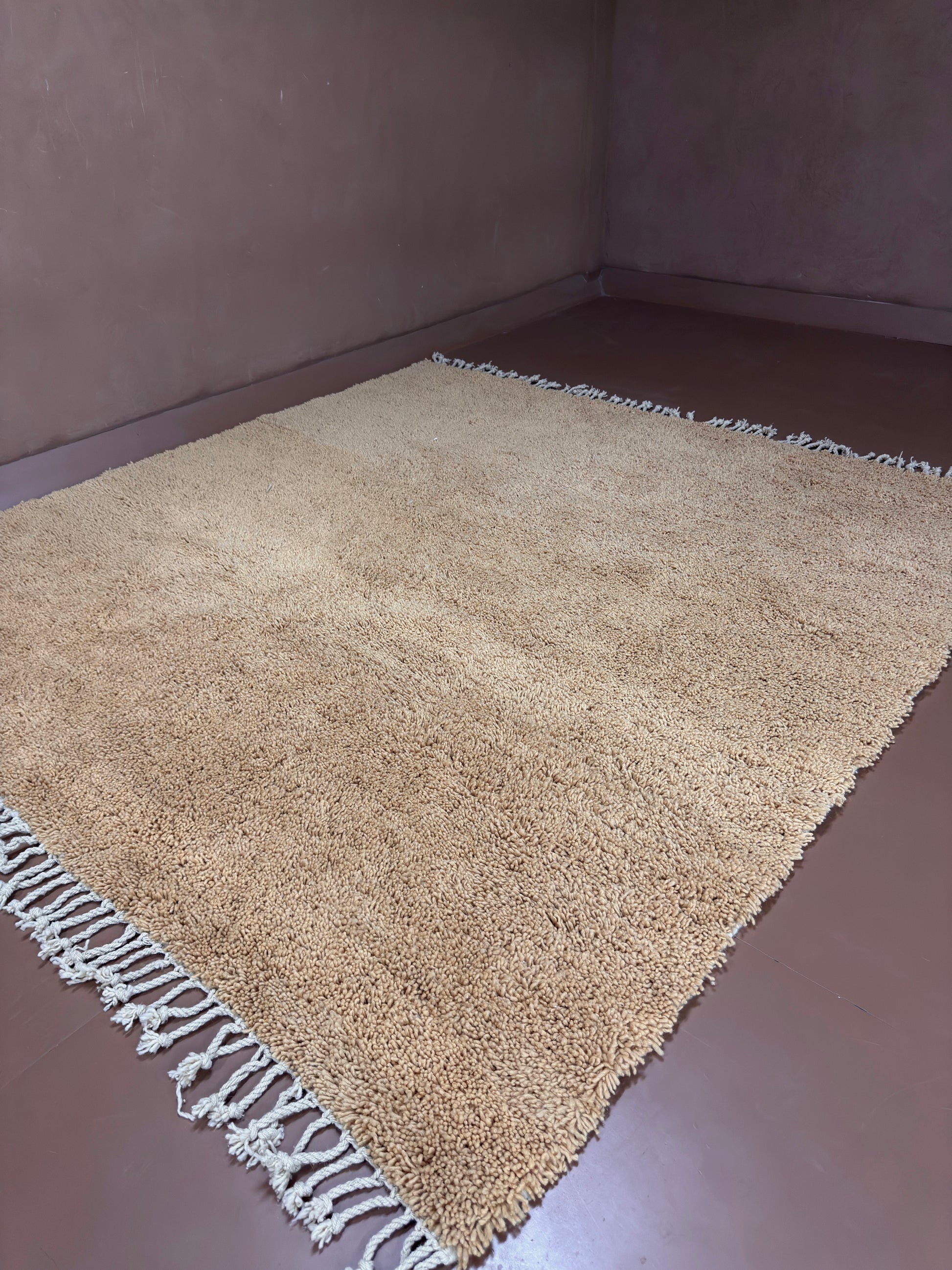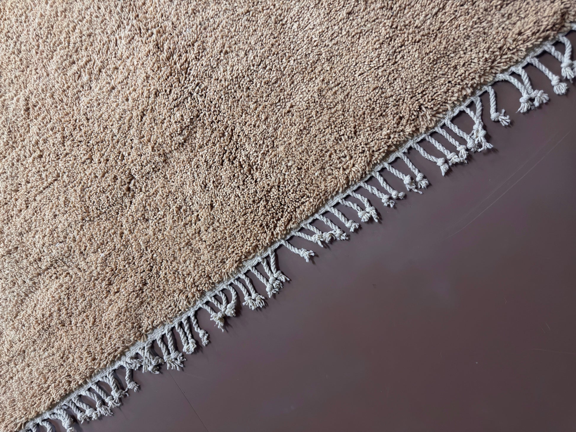 Bring warmth and subtle sophistication into your home with this handwoven Moroccan rug. Expertly crafted by skilled Berber artisans, this minimalist piece blends tradition with modern simplicity. Its soft wool texture and timeless design make it a cozy and elegant foundation for any space.