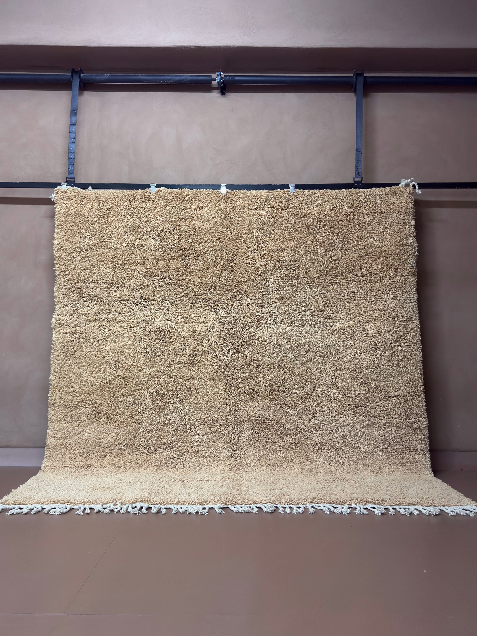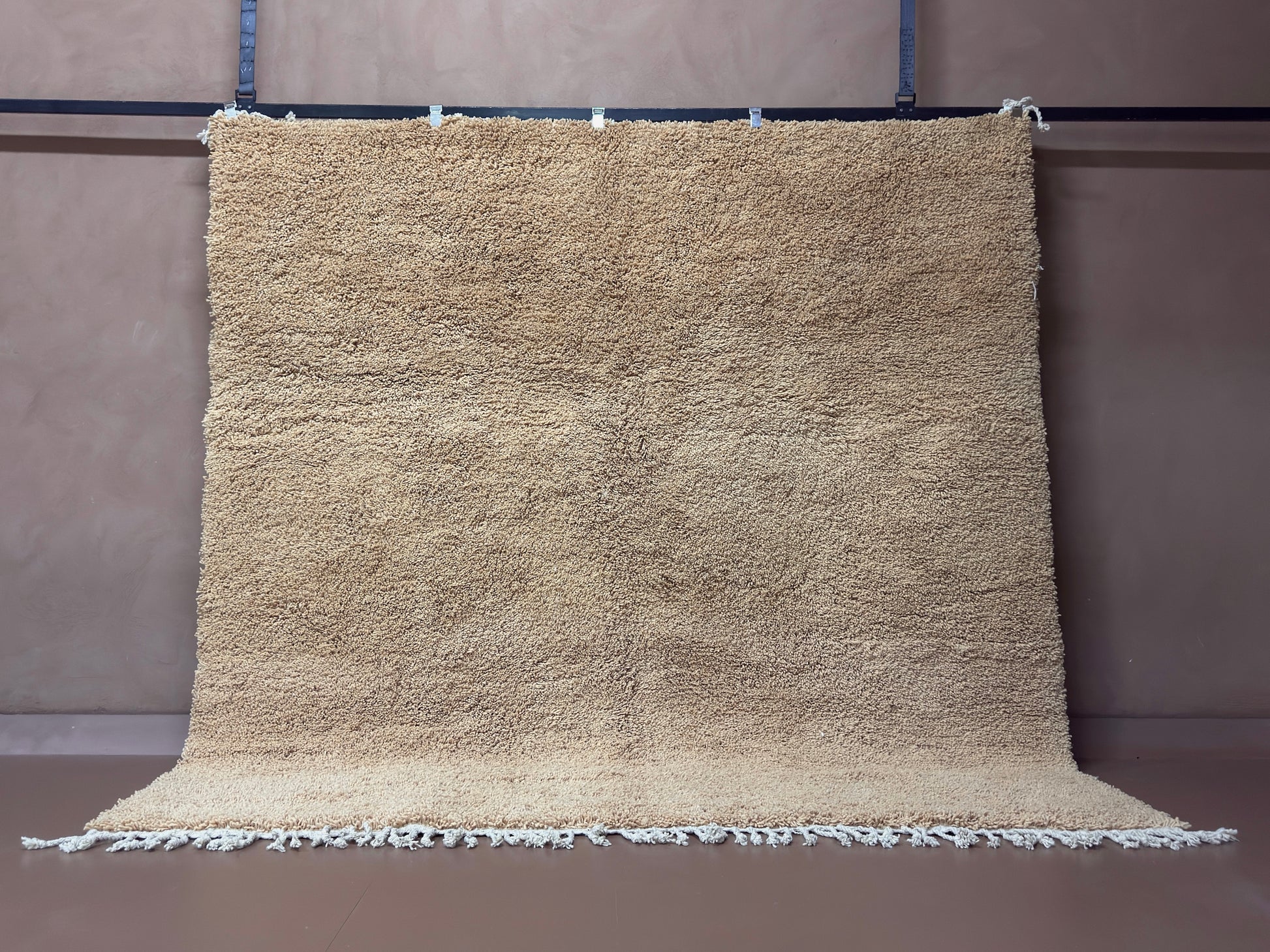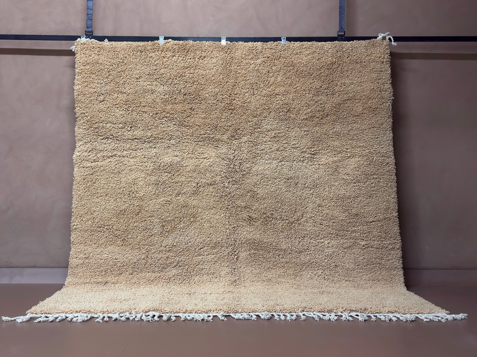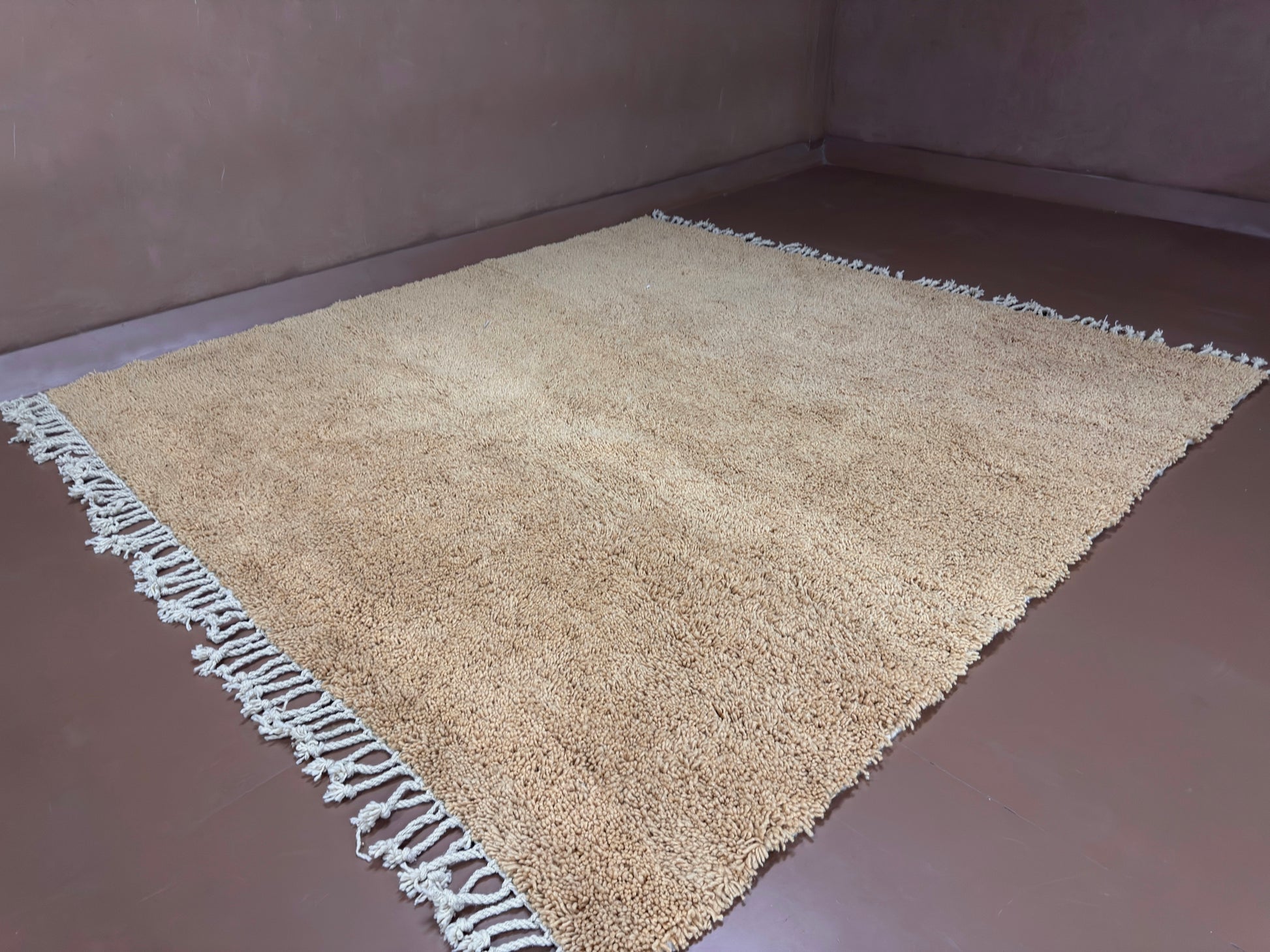 Bring warmth and subtle sophistication into your home with this handwoven Moroccan rug. Expertly crafted by skilled Berber artisans, this minimalist piece blends tradition with modern simplicity. Its soft wool texture and timeless design make it a cozy and elegant foundation for any space.